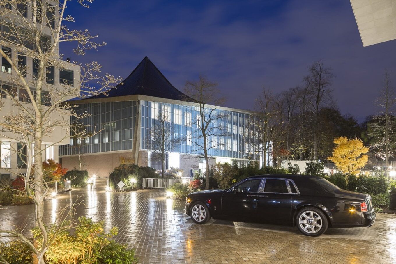 Низкий кирпичный цоколь, одетый в сине-серое остекление, и сложная гиперболическая параболоидная медная крыша, изготовленная из 25 тонн меди – его концепцию можно описать двумя словам «Палатка в парке». Проект разрабатывался по заказу Императорского Института Содружества фирмой шотландского архитектора-модерниста Роберта Мэтью – RMJM.