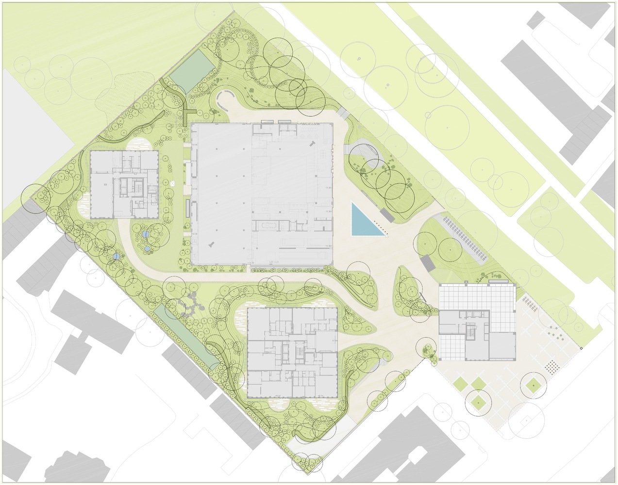 В обновленном здании на площади 10 тысяч кв.м. разместились два основных галерейных пространства, лекционные аудитории, художественные студии, библиотека, архив и ресторан с окнами на Холланд-Парк. Из центрального атриума, стены которого обшиты дубовыми панелями, открывается вид на конструкции знаменитой параболической крыши. Еще одним элементом визуальной идентичности нового интерьера стал яркий дисплей, спроектированный Studio Myerscough.