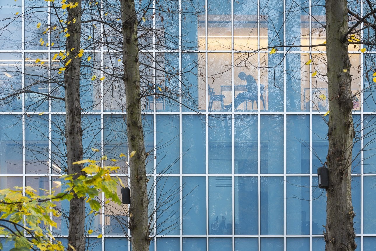 Низкий кирпичный цоколь, одетый в сине-серое остекление, и сложная гиперболическая параболоидная медная крыша, изготовленная из 25 тонн меди – его концепцию можно описать двумя словам «Палатка в парке». Проект разрабатывался по заказу Императорского Института Содружества фирмой шотландского архитектора-модерниста Роберта Мэтью – RMJM.