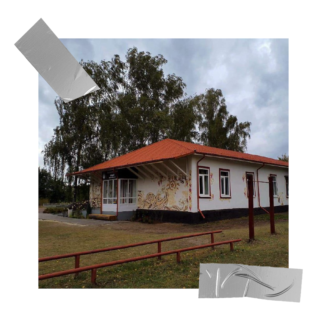 Ззовні ця сторічна будівля має глиняні стіни та намальовані орнаменти у вигляді виноградної лози, які поширені в регіоні. Їх створила художниця Софія Кандаурова.