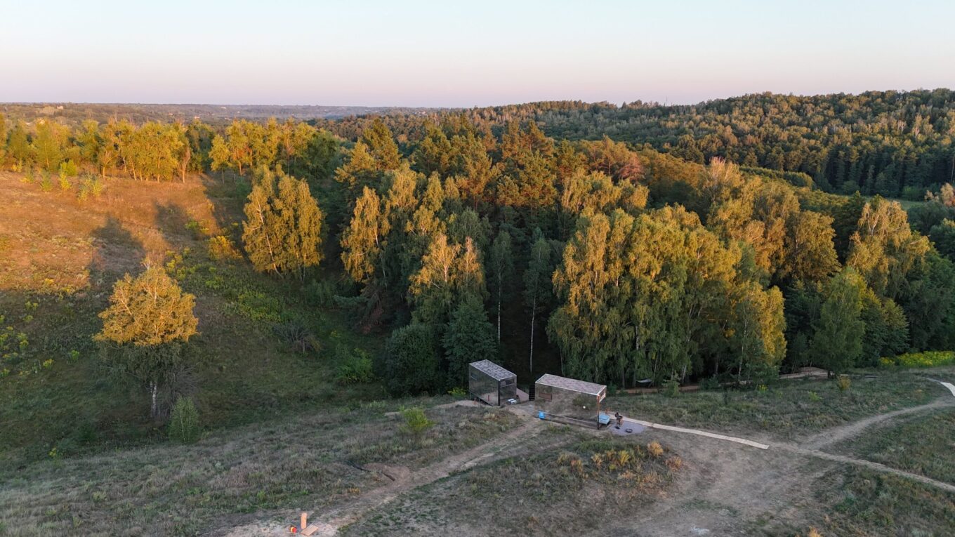 На покрівлі будинків посадили рослину очиток. Ходити територією можна по облаштованих екостежках. Між двома соснами зробили “Палубу тиші” — дерев’яний поміст, де можна просто посидіти, помедитувати чи зайнятися йогою. А щоб милуватися, як сонце сідає за ліс, обладнали також дерев’яний Sunset Point.