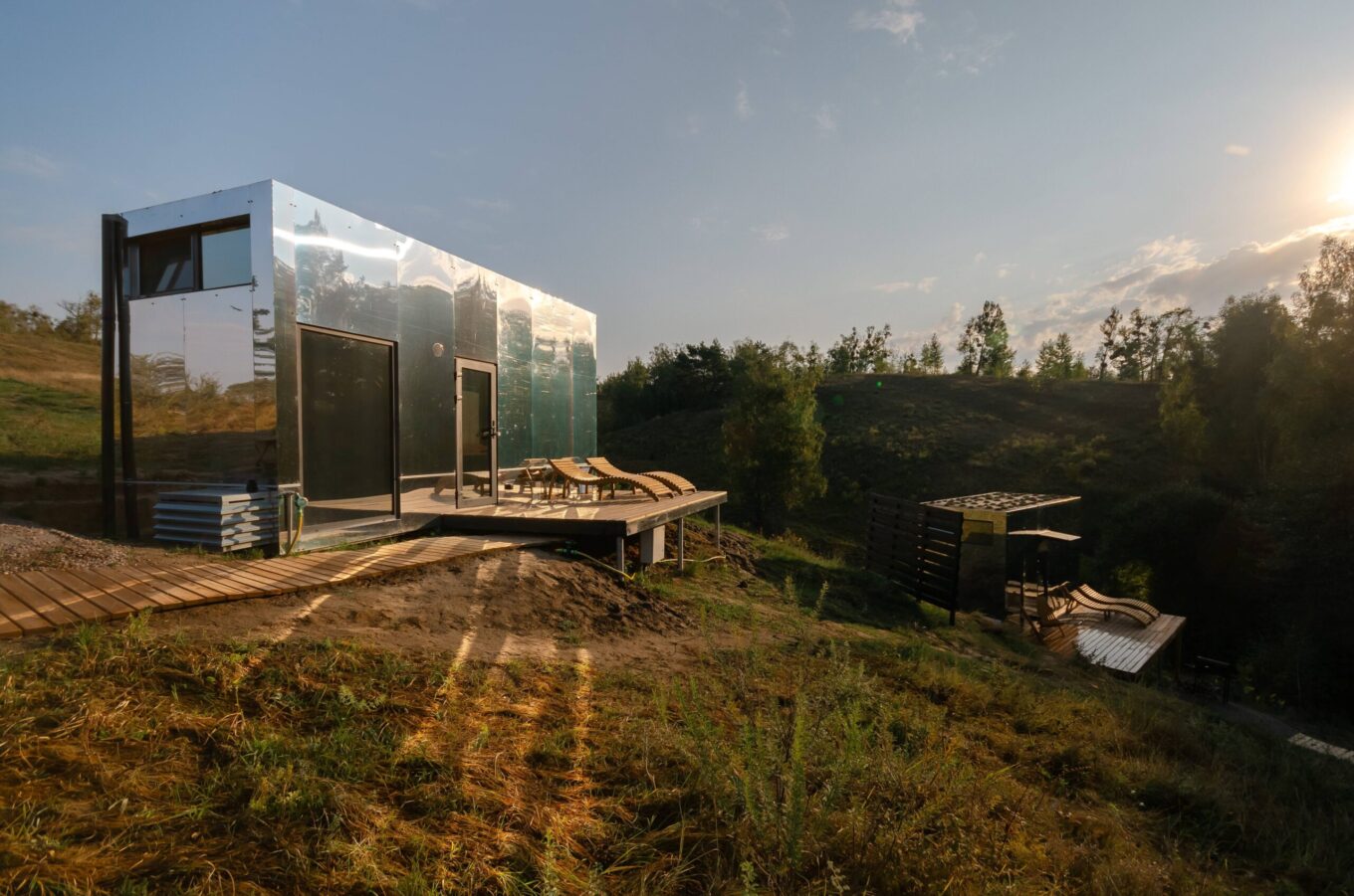 Власник цього екоготелю також є засновником компанії, яка виготовляє модульні будинки на замовлення, розробляє модульні прально-лазневі комплекси для військових та пересувні реабілітаційні центри.
