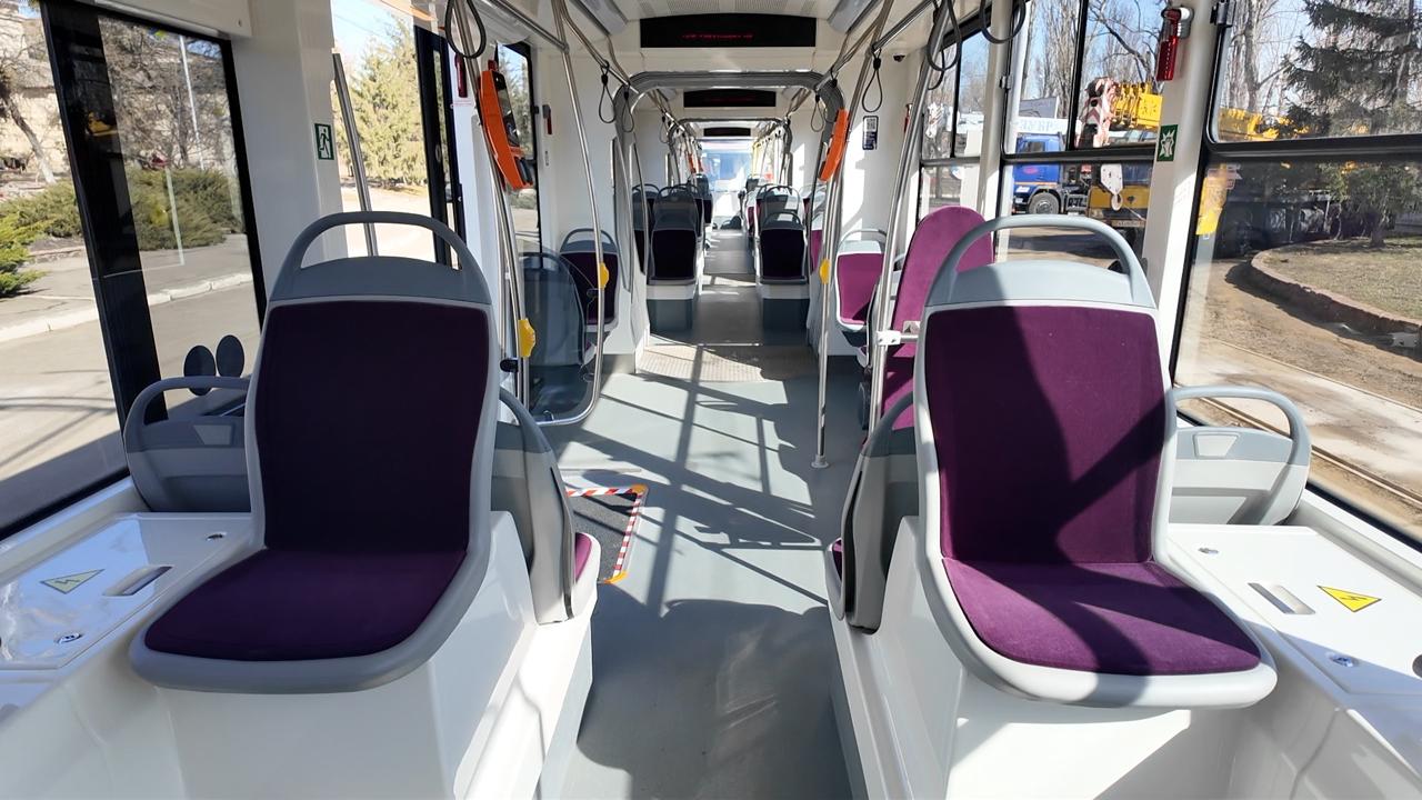 Крім того, для маломобільних пасажирів передбачено пандус. Нові трамваї можуть перевозити одночасно понад 260 пасажирів, із яких 67 мають сидячі місця.