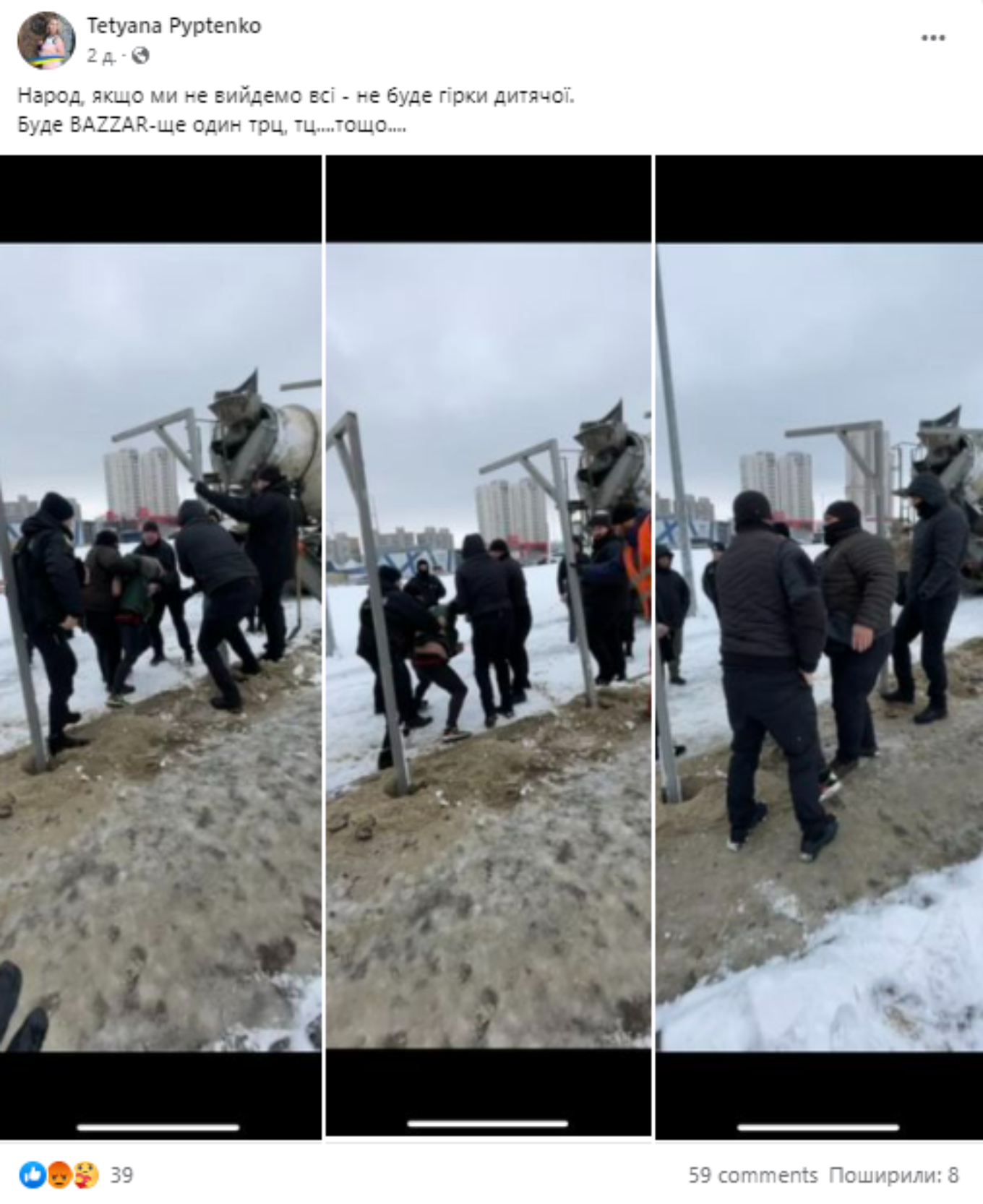 Киянка зауважує, що люди мітингували, попри мороз, утім, їх зустріли охоронці, схожі на “тітушок”.