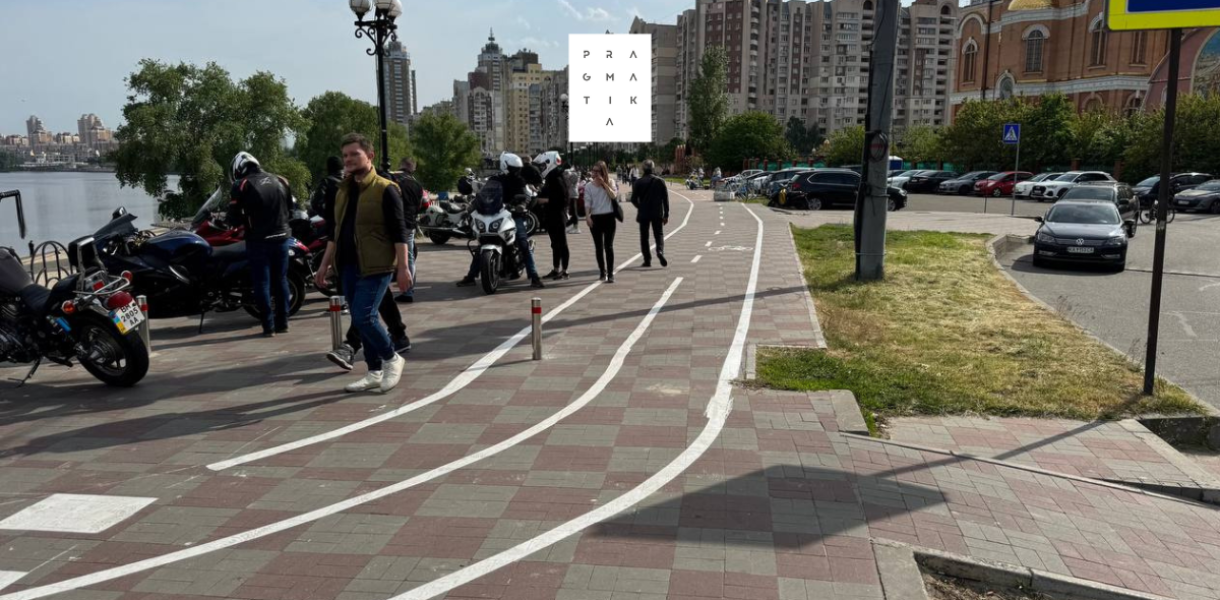 Невідомі нанесли розмітку велодоріжки на Оболонській набережній, яка потенційно може провокувати конфлікти між пішоходами та велосипедистами.