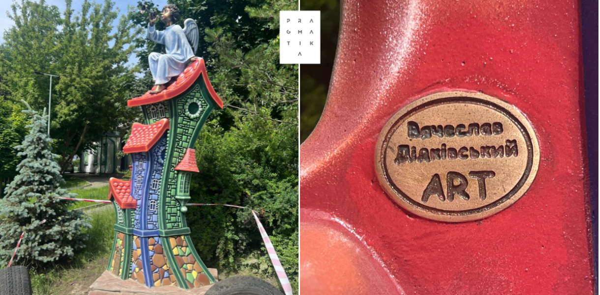13 червня на місці демонтованої “Дівчини на подушках” встановили янгола, який грає на дудочці на даху будинку скульптора В’ячеслава Дідківського.