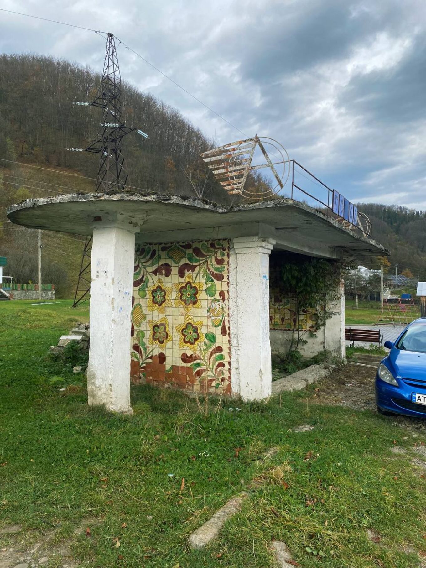 Однак унікальна мозаїка все ж потребує реставрації, оскільки дах зупинки протікає, а деякі розписи вже знищені.