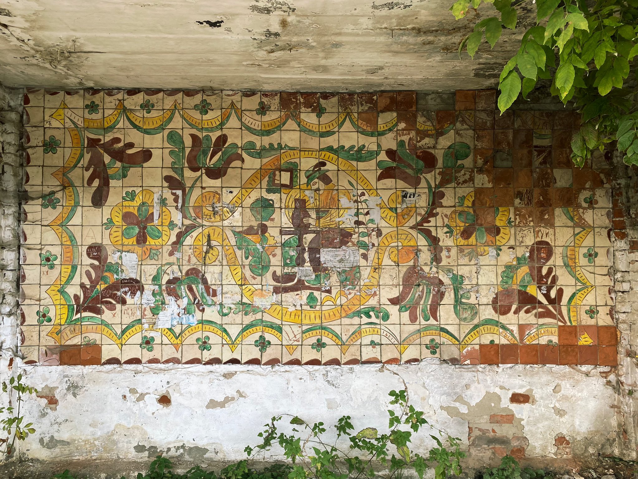 Однак унікальна мозаїка все ж потребує реставрації, оскільки дах зупинки протікає, а деякі розписи вже знищені.