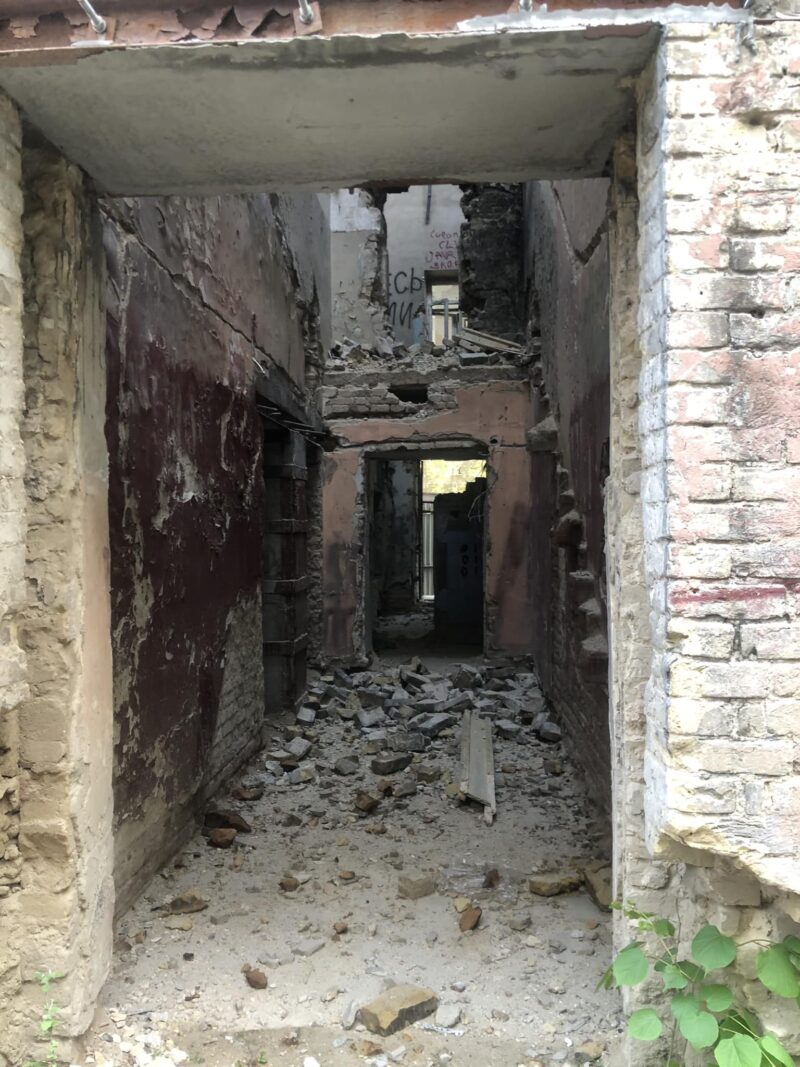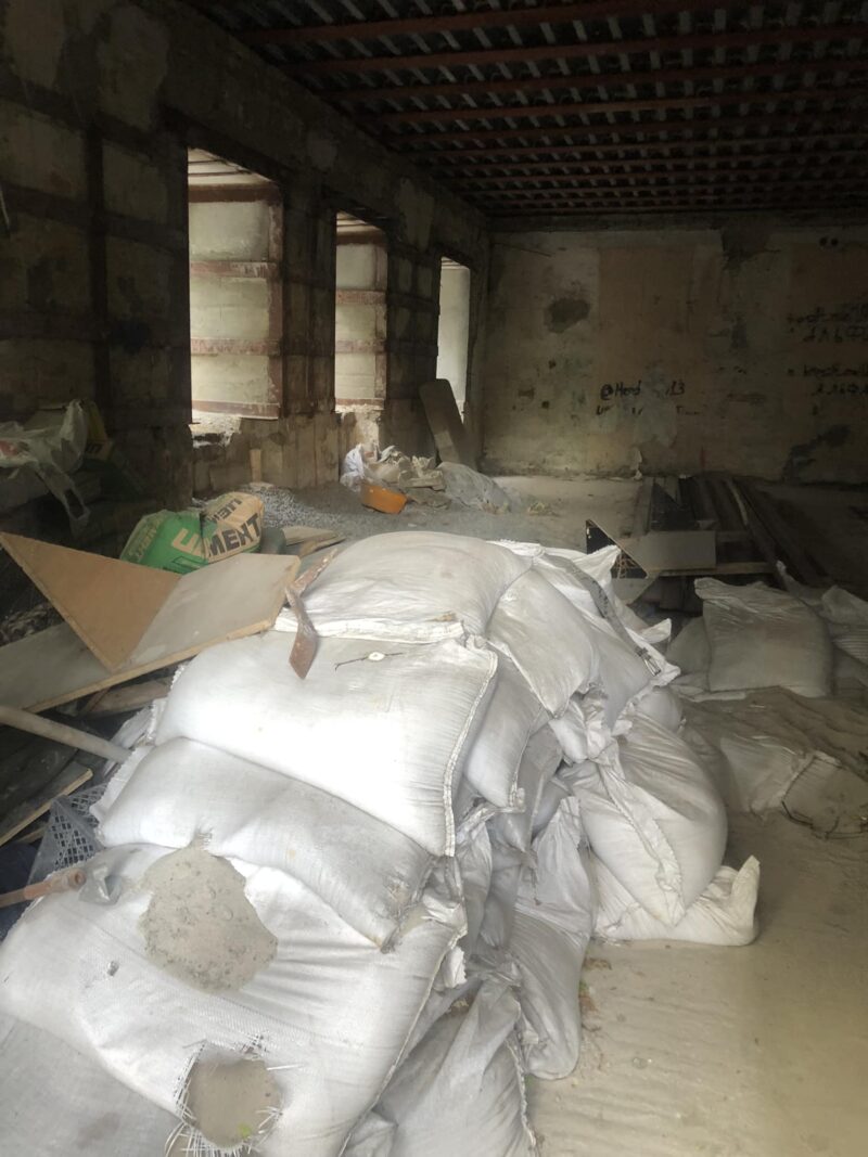 Після огляду території, поліція та депутатка знайшли купу свіжих мішків із цеглою та встановили, що всі несучі конструкції протиправно знесені.