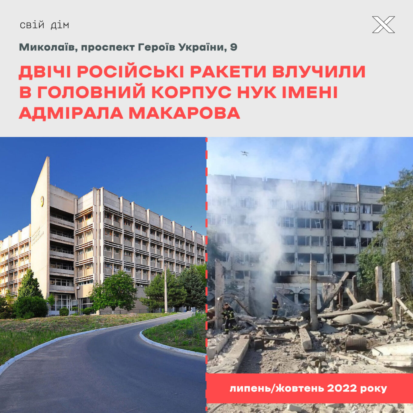 Національний університет кораблебудування імені адмірала Макарова у Миколаєві у 2022 році росіяни обстріляли двічі — вранці 15 липня дві ракети С-300 влучили в будівлю головного корпусу, ще одна — у зварювальний навчальний виробничий цех. Дві ракети впали на територію університету.