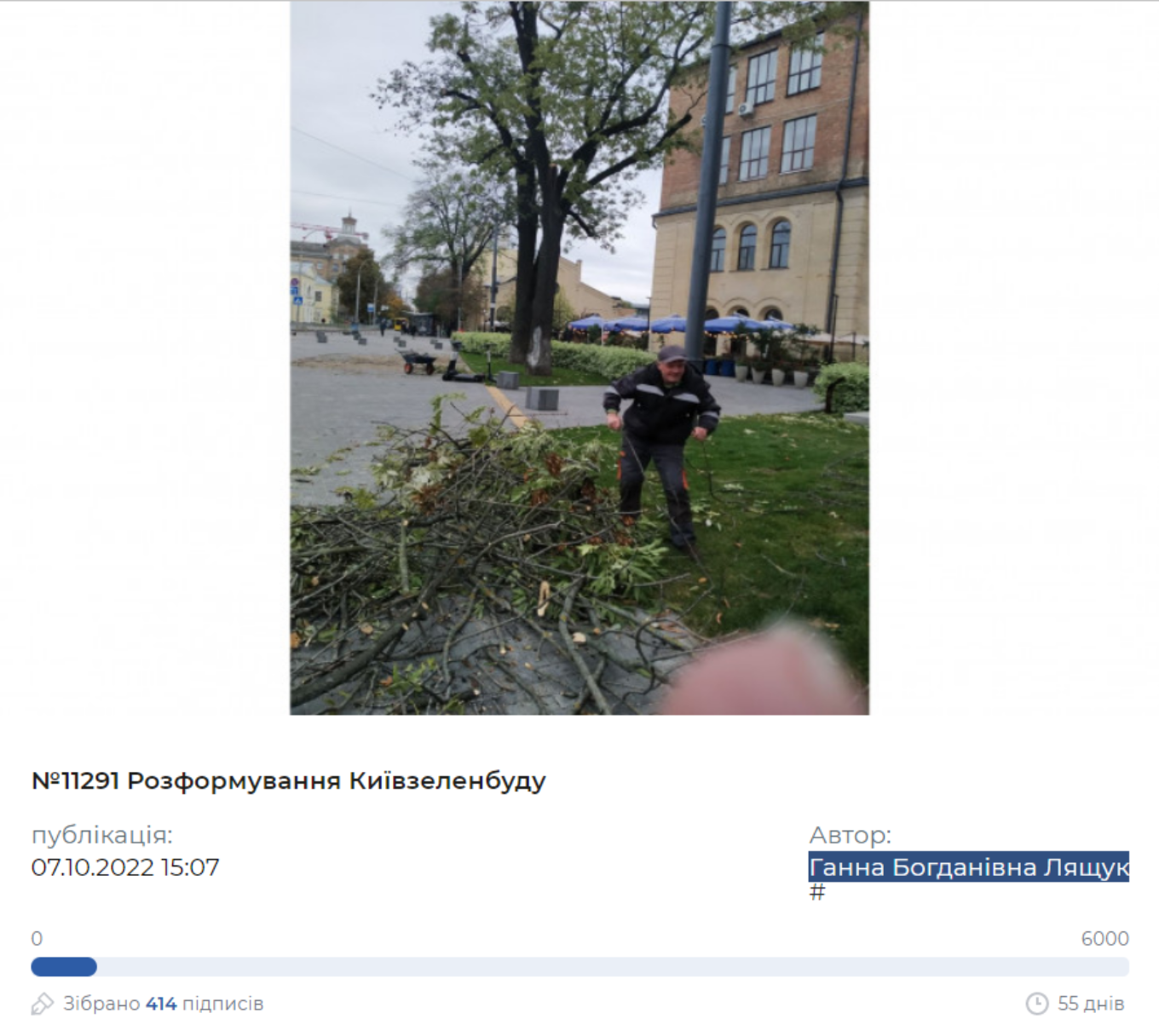 7 жовтня Ганна Лящук зареєструвала відповідну петицію на сайті Київської міської ради.