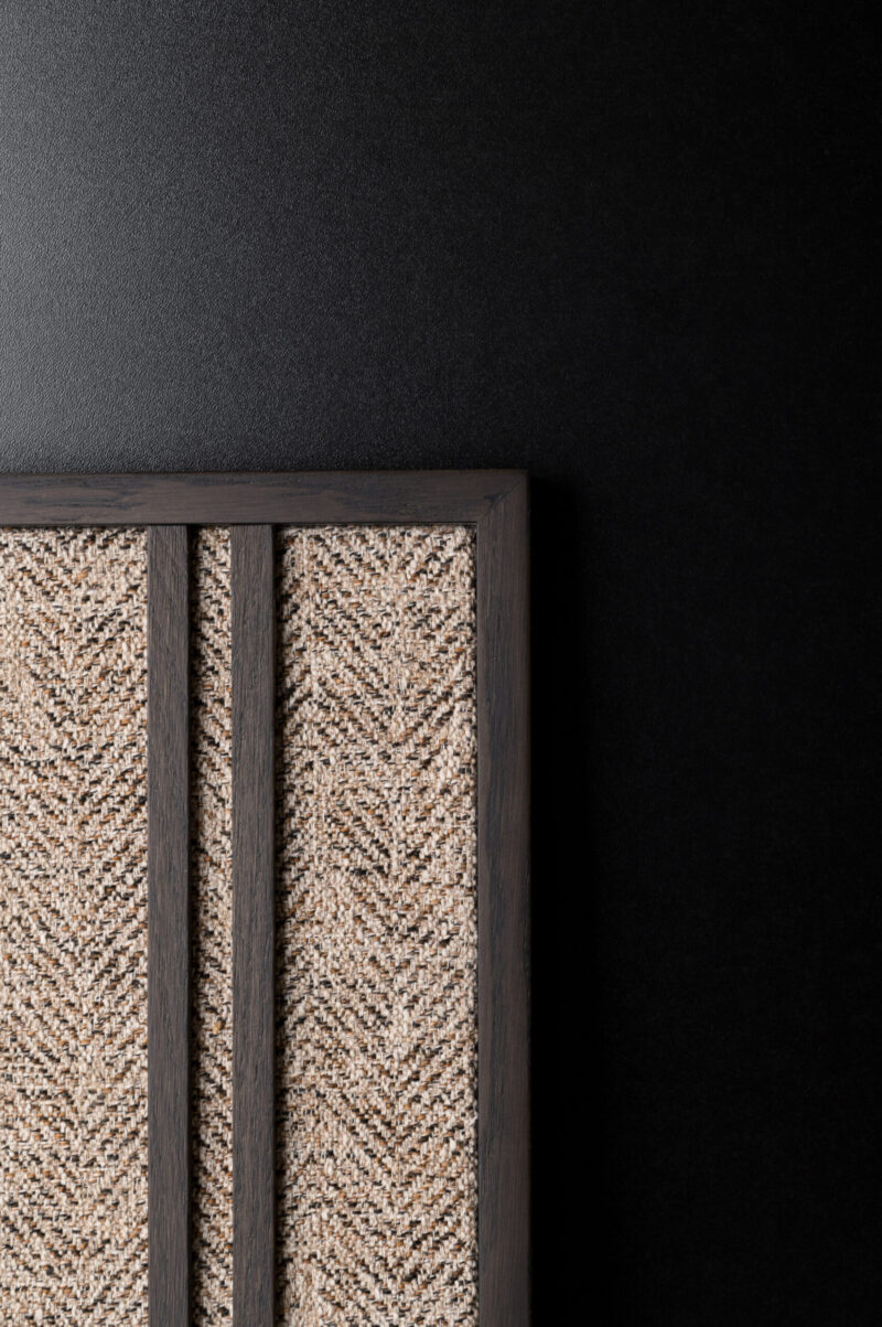 Витончені тонкі лінії шпонованих елементів, які обігрують фактурну тканину чіткими переплетеннями, акцентують геометрію простору та надають виразності фасадові. Кожен елемент – це окрема нота стилю, що створює стриманий і завершений загальний образ.