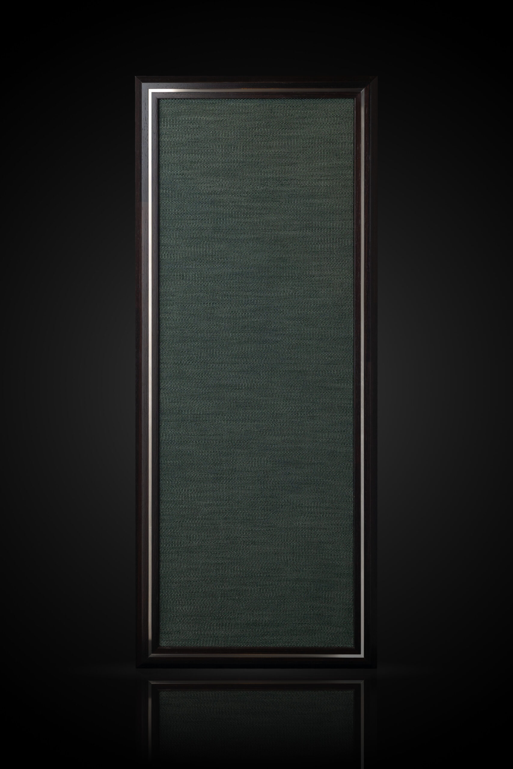 Внутрішня латунна рамка підкреслює унікальну фактуру тканини. Переливи світла на металевій поверхні створюють ефект глибини й динамізму, граючись із тінями та відблисками. У поєднанні з м’якою матерією та дерев’яною рамкою внутрішня латунна оздоба створює гармонійне поєднання всіх трьох матеріалів.