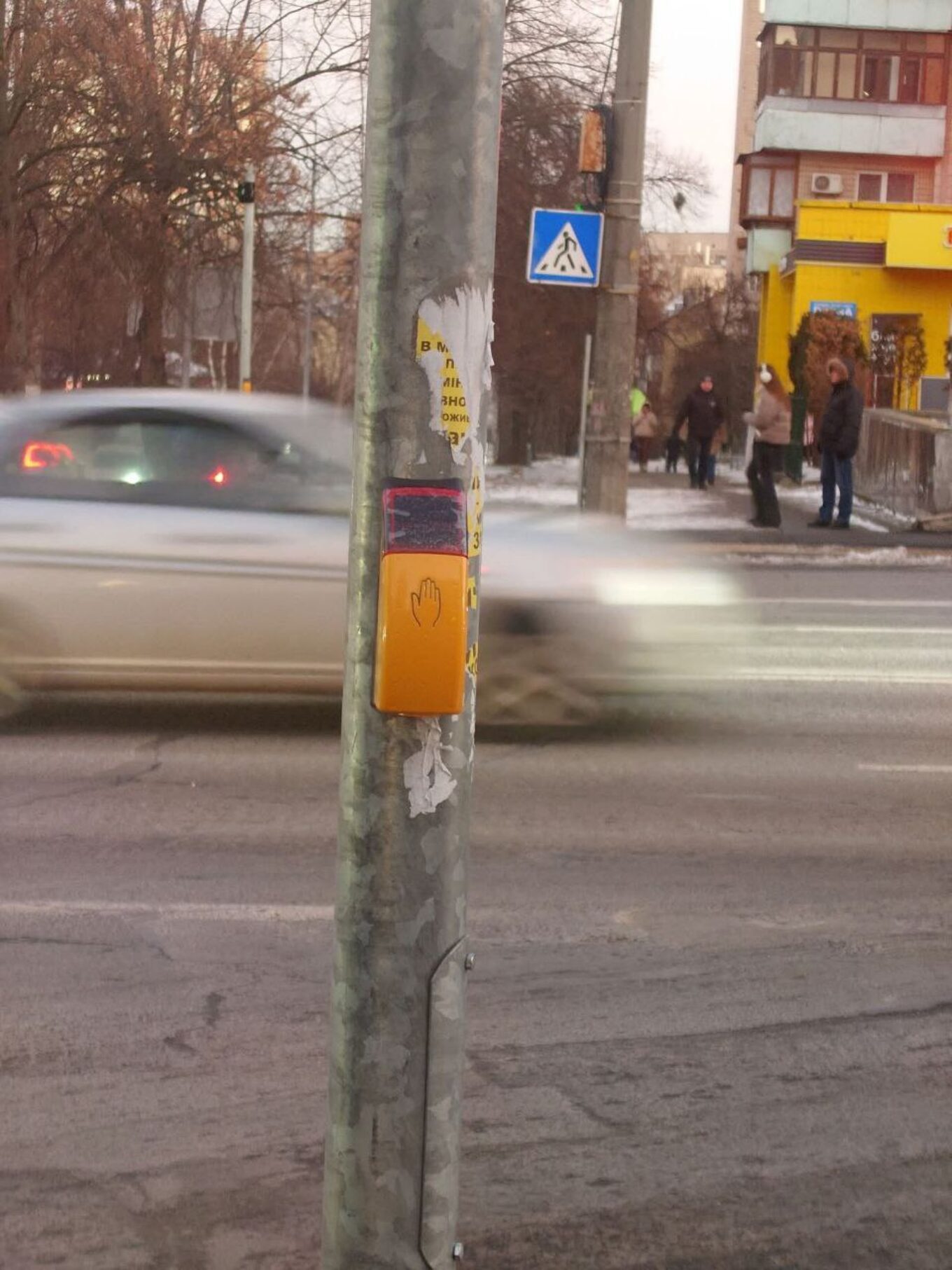 На підходах до переходів є кнопки виклику зеленого сигналу. Однак навіть без натискання на них, світлофор загоряться зеленим для пішоходів автоматично.