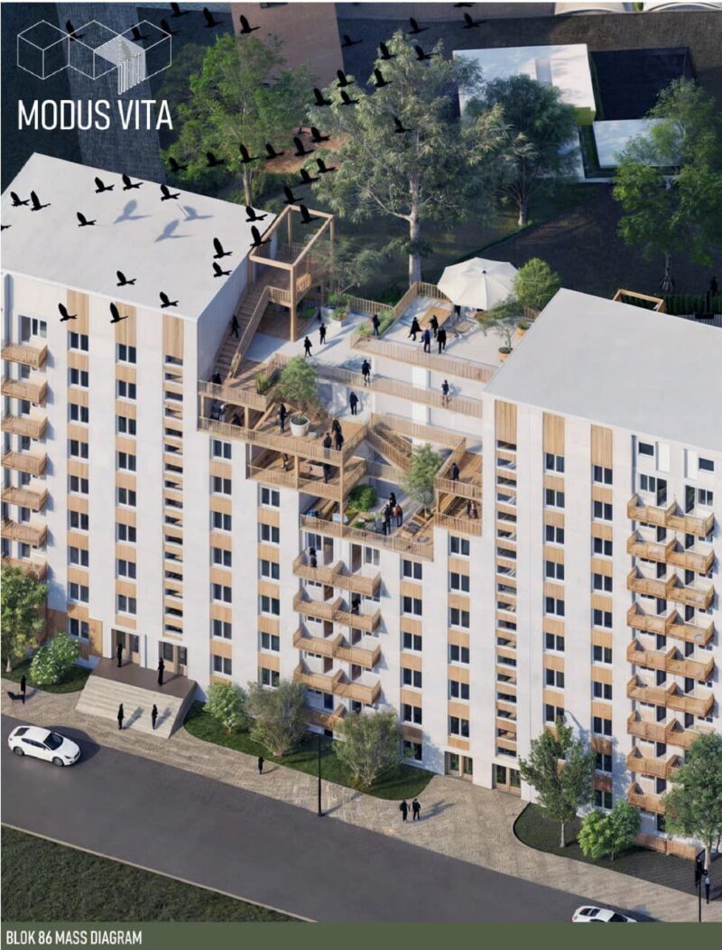 Також команда запропонувала зміцнювати будівлі за допомогою перероблених матеріалів і теплоізоляції й розширювати житловий простір за рахунок зимових садів і терас.