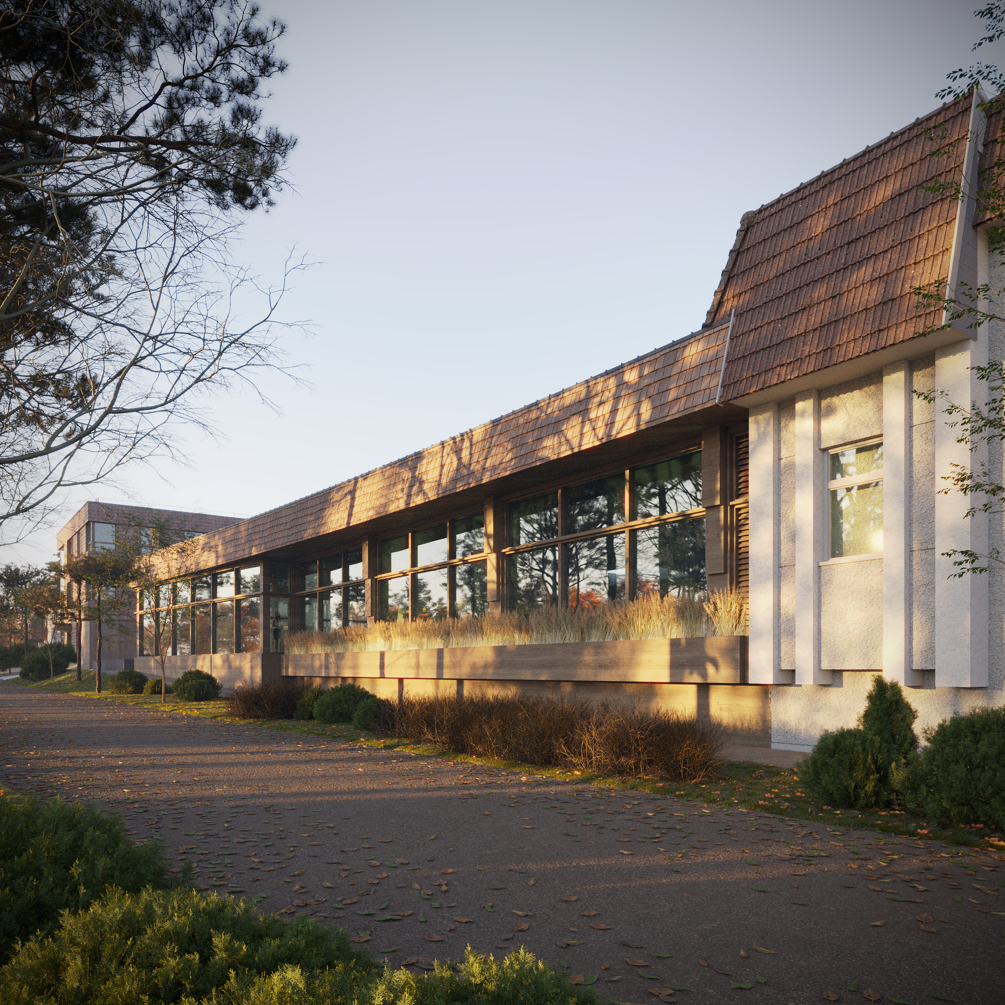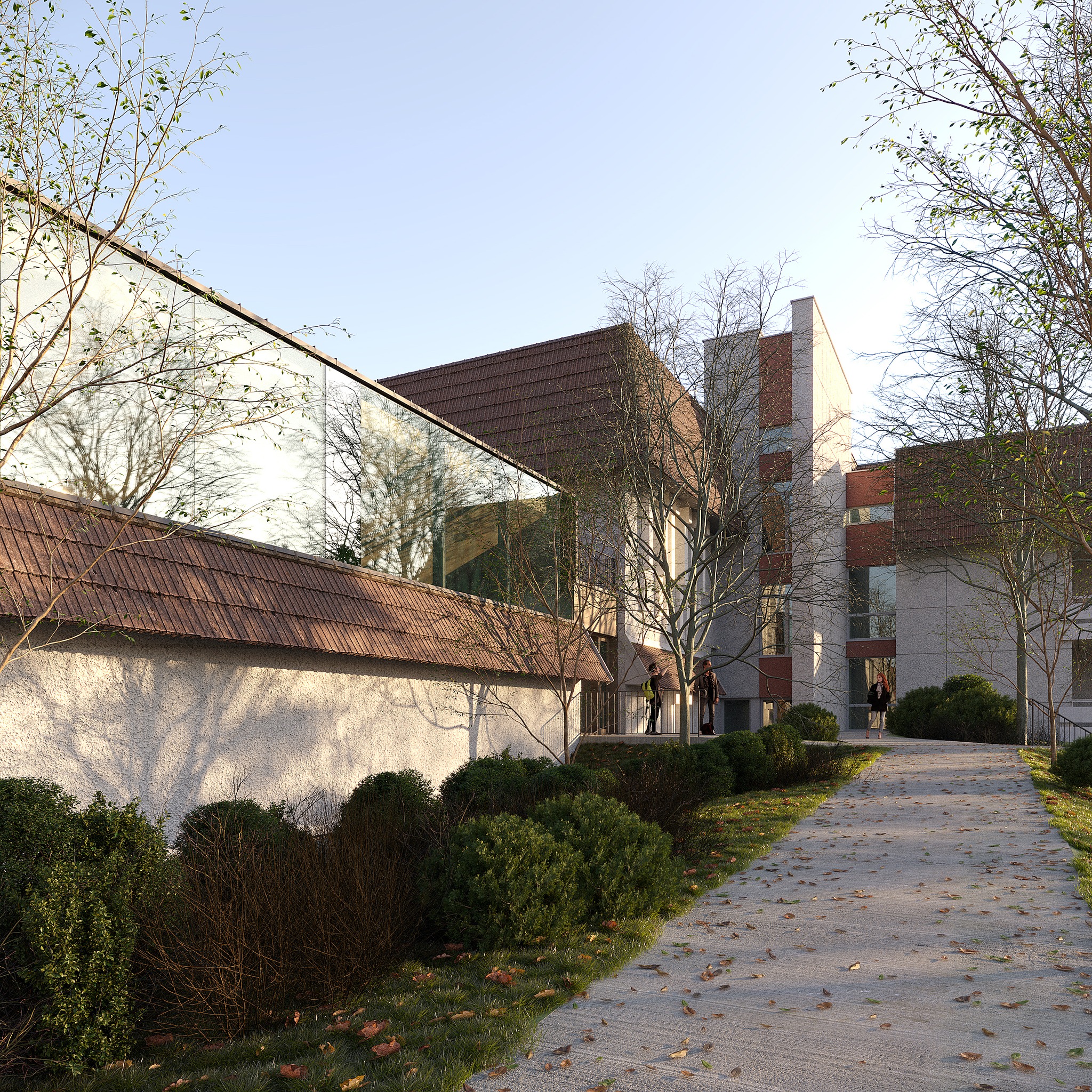 Під час проєктування команда архітекторів намагалась не втручатися в архітектуру існуючих будівель, наскільки це було можливим, не трансформувати і не видозмінювати її сформованого образу.