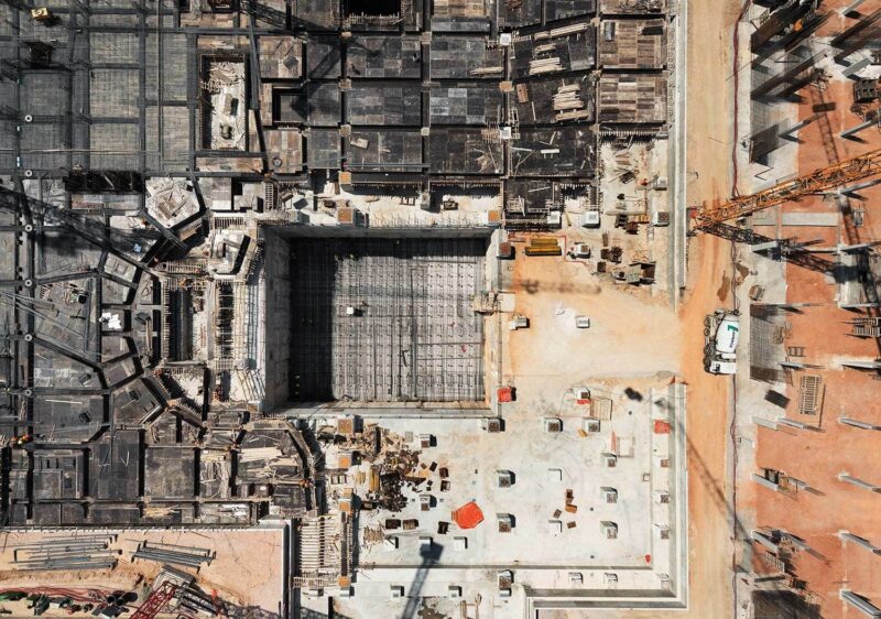 Серия “Ортография” позволяет не только взглянуть на ландшафт с необычного ракурса, но и увидеть рождение архитектурного объекта, открывает нам секреты строительного процесса, которые обычно скрыты от посторонних глаз заборами, ограждающими вход на площадку.