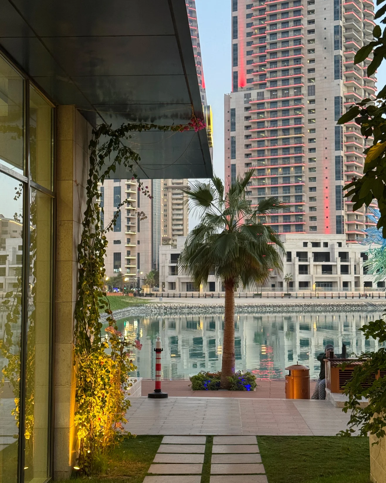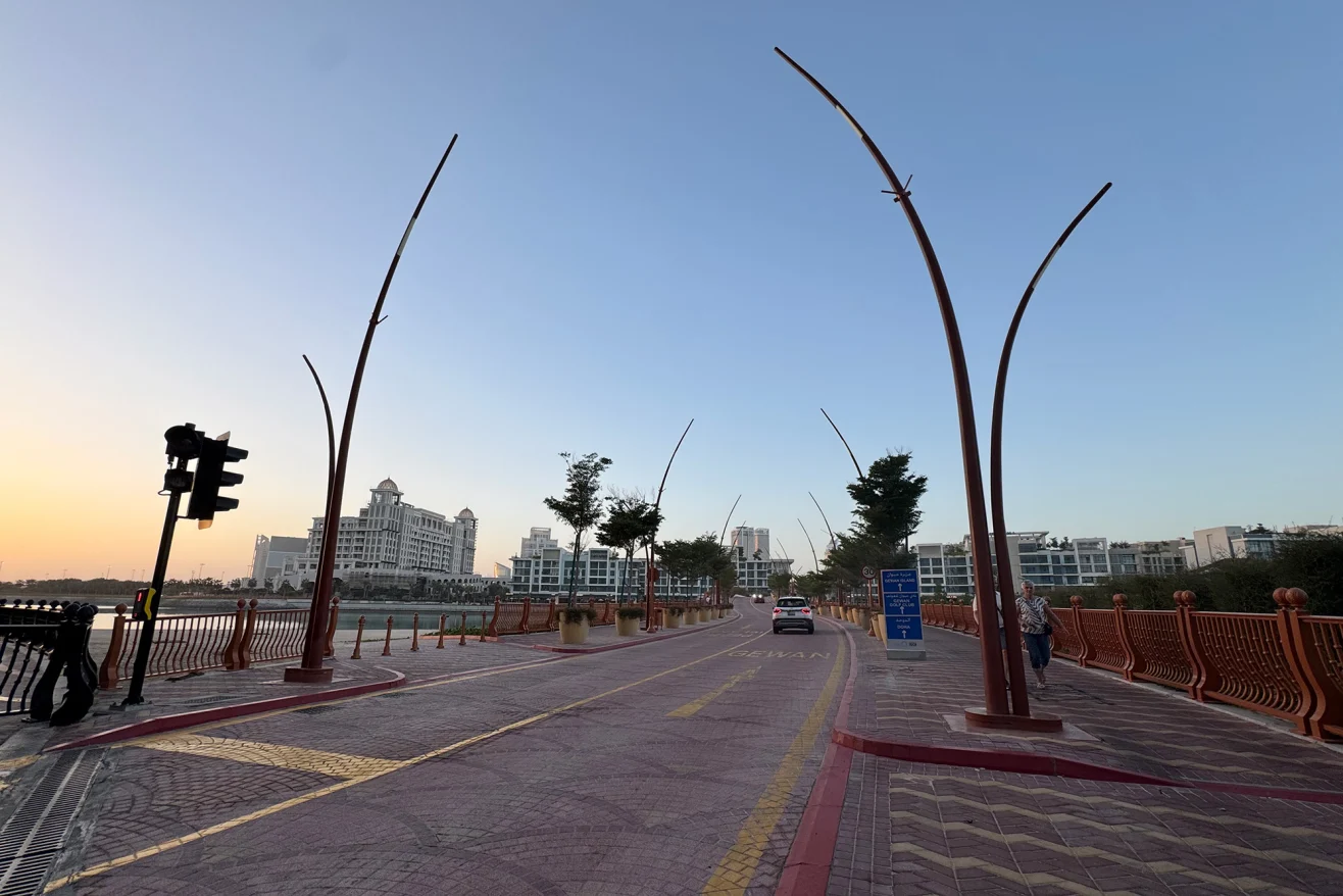 Уздовж узбережжя тягнеться набережна з ресторанами та скляними «деревами», натхненими роботами американського художника-склодува Дейла Чіхулі. Також тут працює зупинка водного таксі: за приблизно 200 катарських ріалів (близько $55) можна за 20 хвилин дістатися каналами кварталу Qanat до марини Porto Arabia.