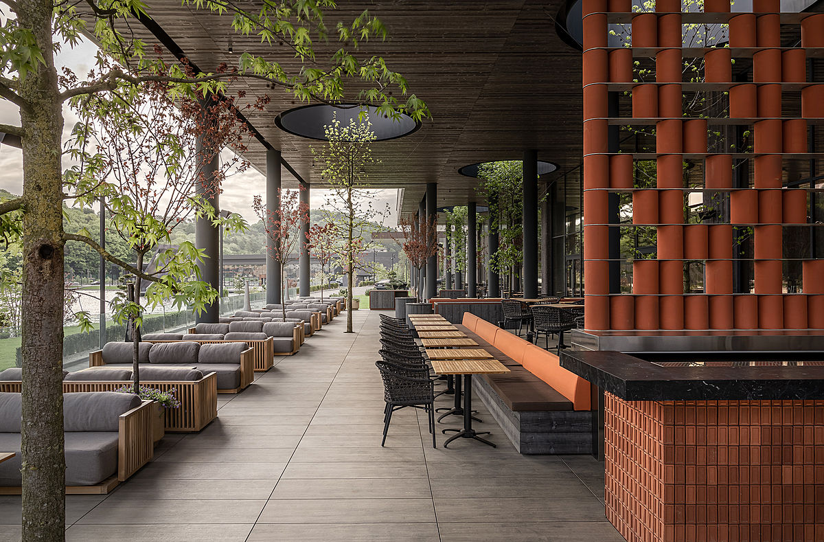 Ресторан Terra є частиною комплексу Emily Resort – sport, medical, entertainment у Винниках, що на Львівщині. За словами дизайнерів, цей проєкт уособлює українське розуміння концепції чотирьох стихій – вода, земля, повітря та вогонь. “Масштабний, соковитий і в чомусь магічний. Теруарний дизайн, що відображає кольори, характер та архетипи місцевості, де він виник”.