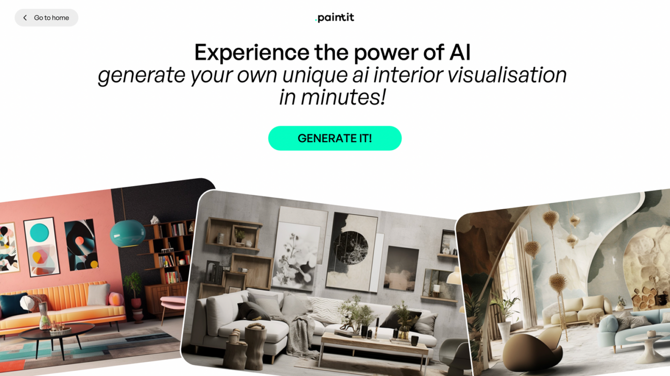 Платформа дає можливість експериментувати з різними комбінаціями кольорів, розташуванням меблів, варіантами освітлення та декоративними елементами. Paintit мінімалістична та інтуїтивно зрозуміла програма, де всі стилі та кольорові схеми гарно візуалізовані та дають змогу звичайним користувачам зрозуміти який результат, той отримає наприкінці. Сервіс підтримує експорт результатів та дозволяє ділитись візуалізаціями.