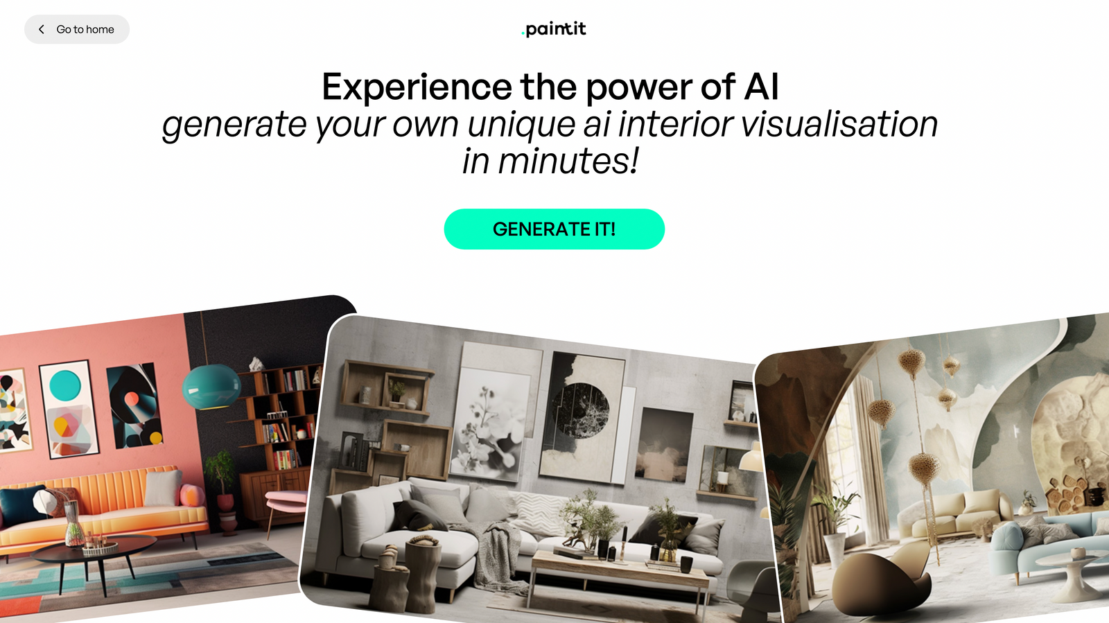 Платформа дає можливість експериментувати з різними комбінаціями кольорів, розташуванням меблів, варіантами освітлення та декоративними елементами. Paintit мінімалістична та інтуїтивно зрозуміла програма, де всі стилі та кольорові схеми гарно візуалізовані та дають змогу звичайним користувачам зрозуміти який результат, той отримає наприкінці. Сервіс підтримує експорт результатів та дозволяє ділитись візуалізаціями.