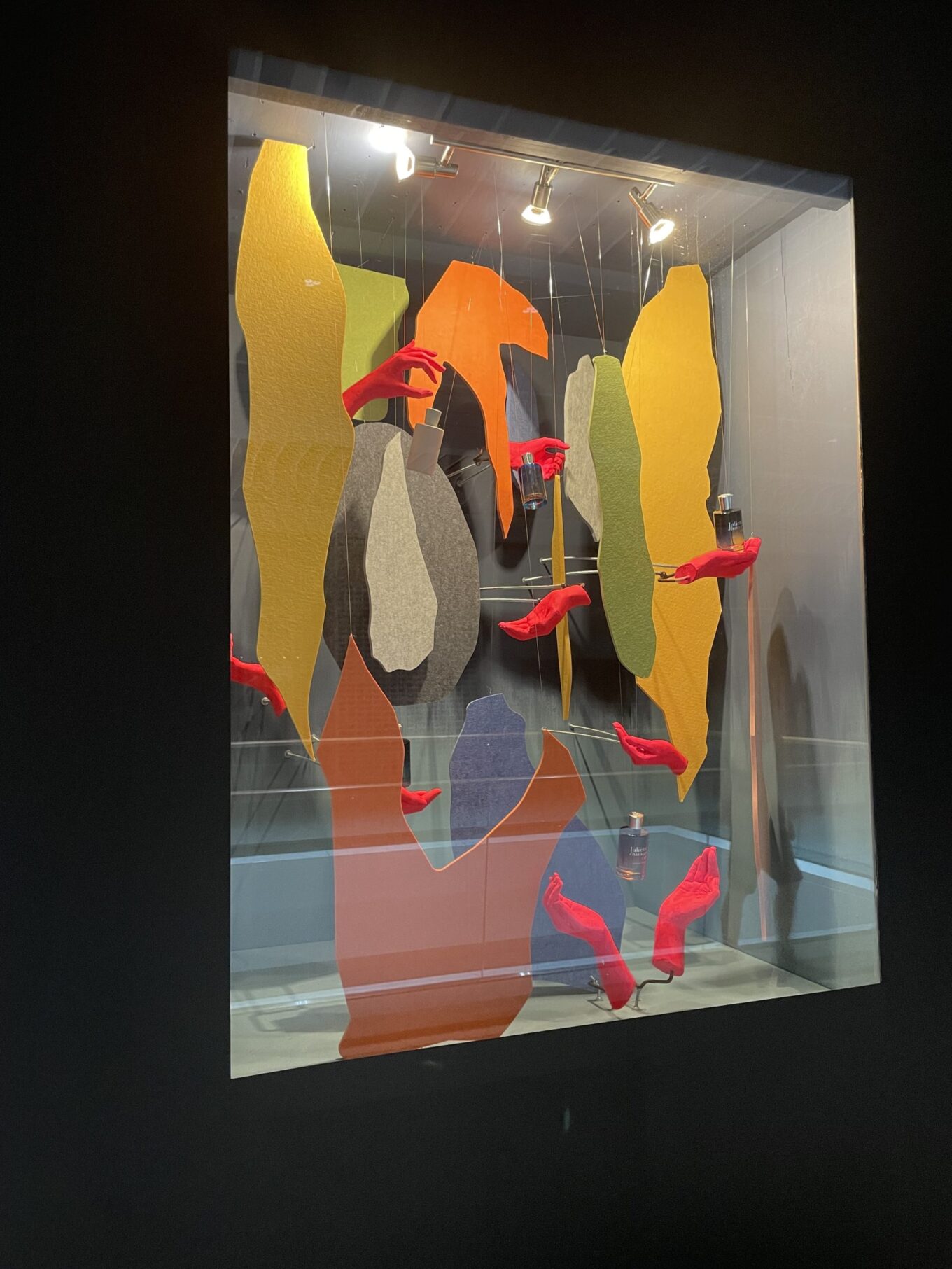Катерина Гайдамака, дизайнерка, візуальна художниця: «Віконний портал — це плавання у яскравих кольорах ваших почуттів, які провокують скарби у вигляді парфумів. Нашарування кольорових форм робить композицію живою — як дикий ліс, що занурює у фантазію. Їхня динаміка дає глибину, привертає увагу до флаконів, які тримають, як фокусники, рожеві жіночі руки. Мені дуже подобається, що вітрина може стати справжнім артпроєктом або інсталяцією, де художник розкриває продукт у власному стилі, поміщаючи його в новий всесвіт, або навпаки роблячи його образ класичним. Мені б дуже хотілося, аби дизайн вітрин став справді популярним у нас, так само як це відбувається в Європі, де половина торговельних центрів мають вигляд, наче справжні музеї!»