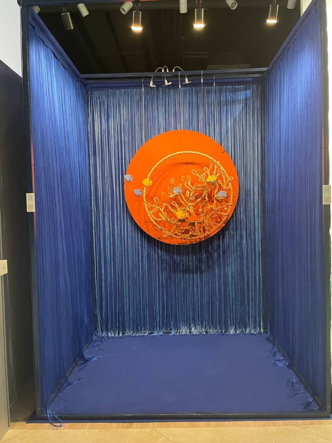 Мереживо коралу якнайкраще передається плетеними вручну декораціями з використанням PET-матеріалів, поліпропіленових текстурованих шнурів, а також акустичних панелей з переробленого харчового пластику від компанії Re:Quiet.