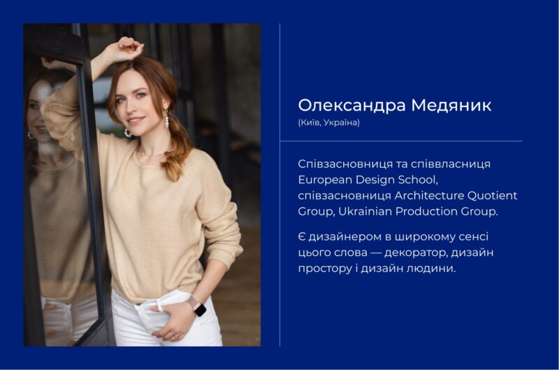 Ірина Бойченко, декораторка, засновниця майстерні KoKo decor: «Легка хода, легка думка, легка сукня, легка зачіска… Легка сумочка… Чи не така легка? Чи це лише здається? Ніколи не можна передбачити, що містить жіноча сумочка… Як і прослідкувати ланцюжок жіночих думок… Така концепція моєї вітрини, яку я придумала давно, і дуже щаслива, що отримала можливість втілити цей проєкт! Подібні конкурси — можливість спробувати свої сили, отримати визнання професіоналів, які давно «наростили м’язи» у сфері дизайну, отримати увагу широкого загалу, і взагалі почувати себе впевненіше.