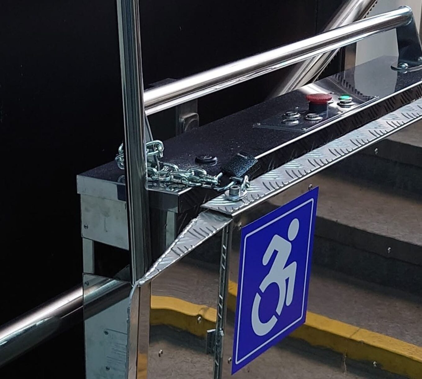 На станції швидкісного трамвая “Індустріальна” інклюзивний підйомник скували ланцюгом