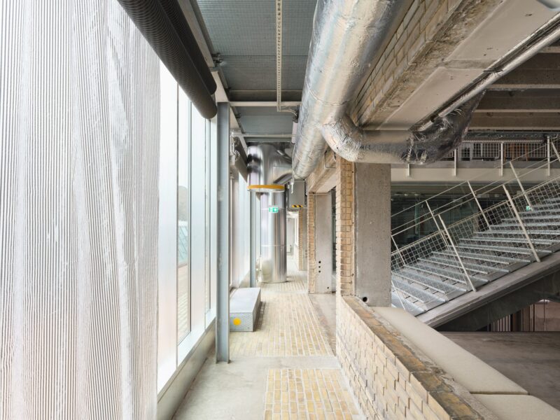 Фасад будівлі подовжили на 1,5 м для кращої енергоефективності та адаптивності простору. Жовта цегла, характерна для старої фабрики, також отримала друге життя – з неї створили тротуари навколо будівлі.