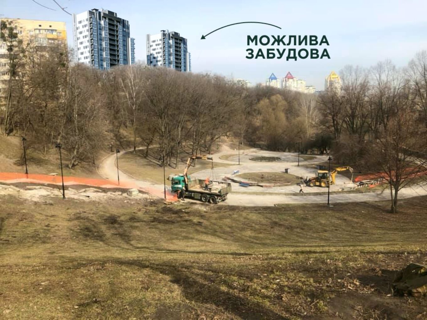 Унаслідок діяльності забудовника біля парку відбувся зсув грунту та обвал однієї із центральних алей парку в будівельний котлован.