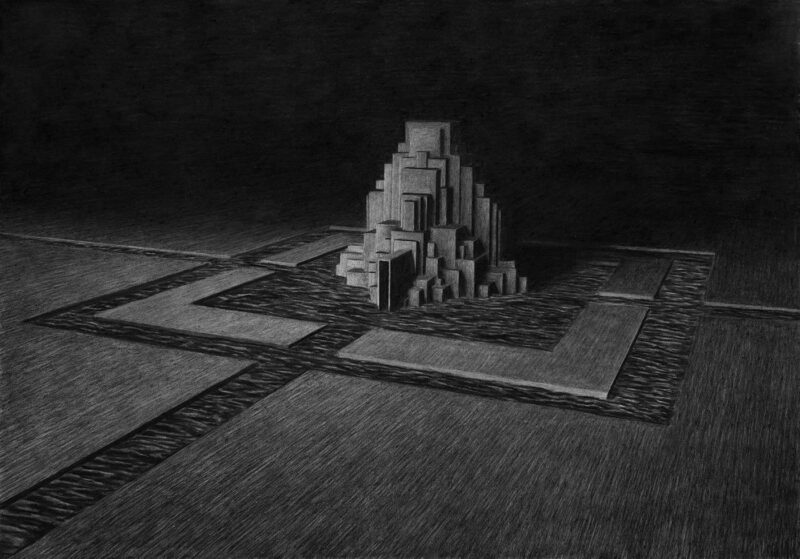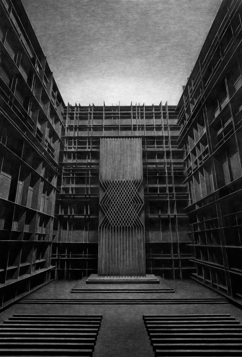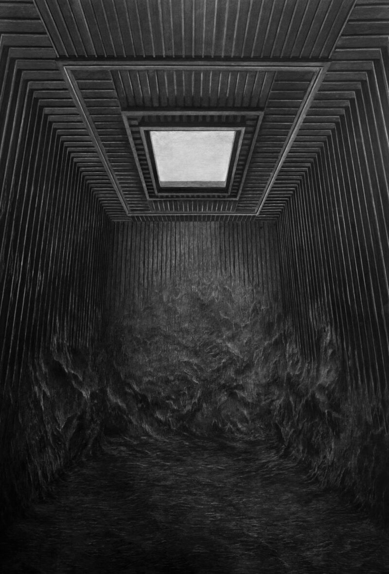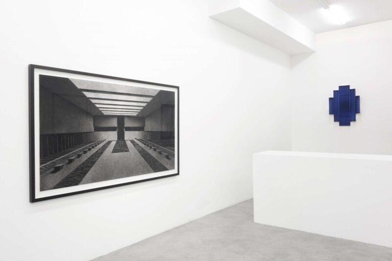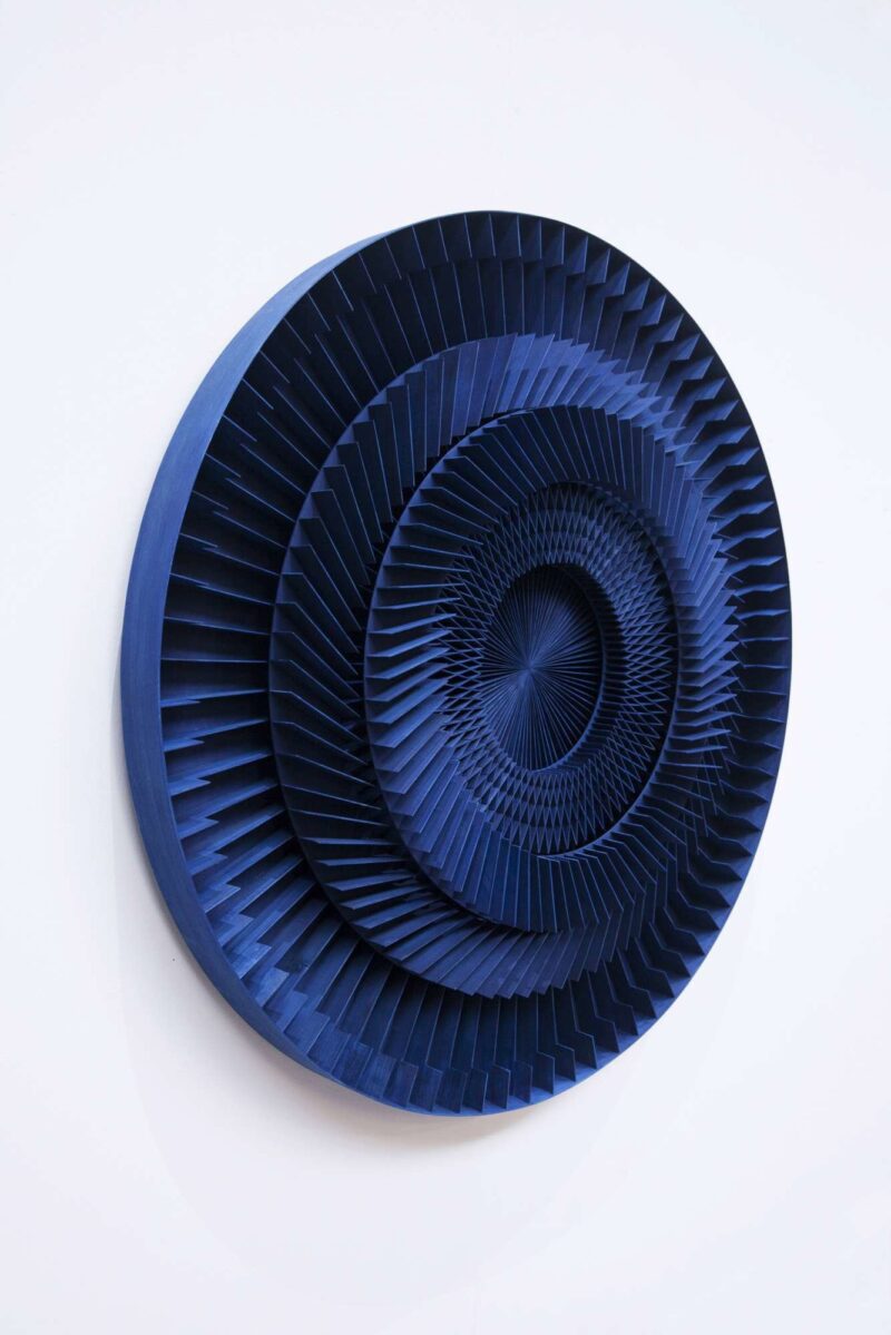 В экспозицию также входят рисунки углем и скульптуры – «объекты для почитания». Объекты из фанеры, окрашенной в кобальт, своими строгими симметричными формами, ритмическими рядами, орнаментами – неуловимо напоминают реликвии самых разных религий.