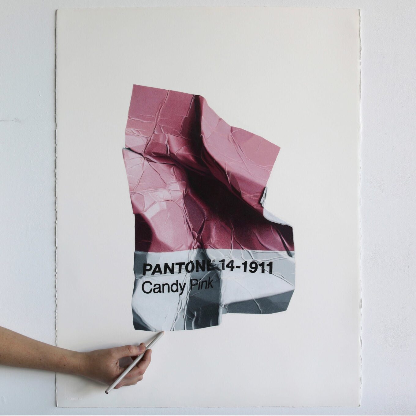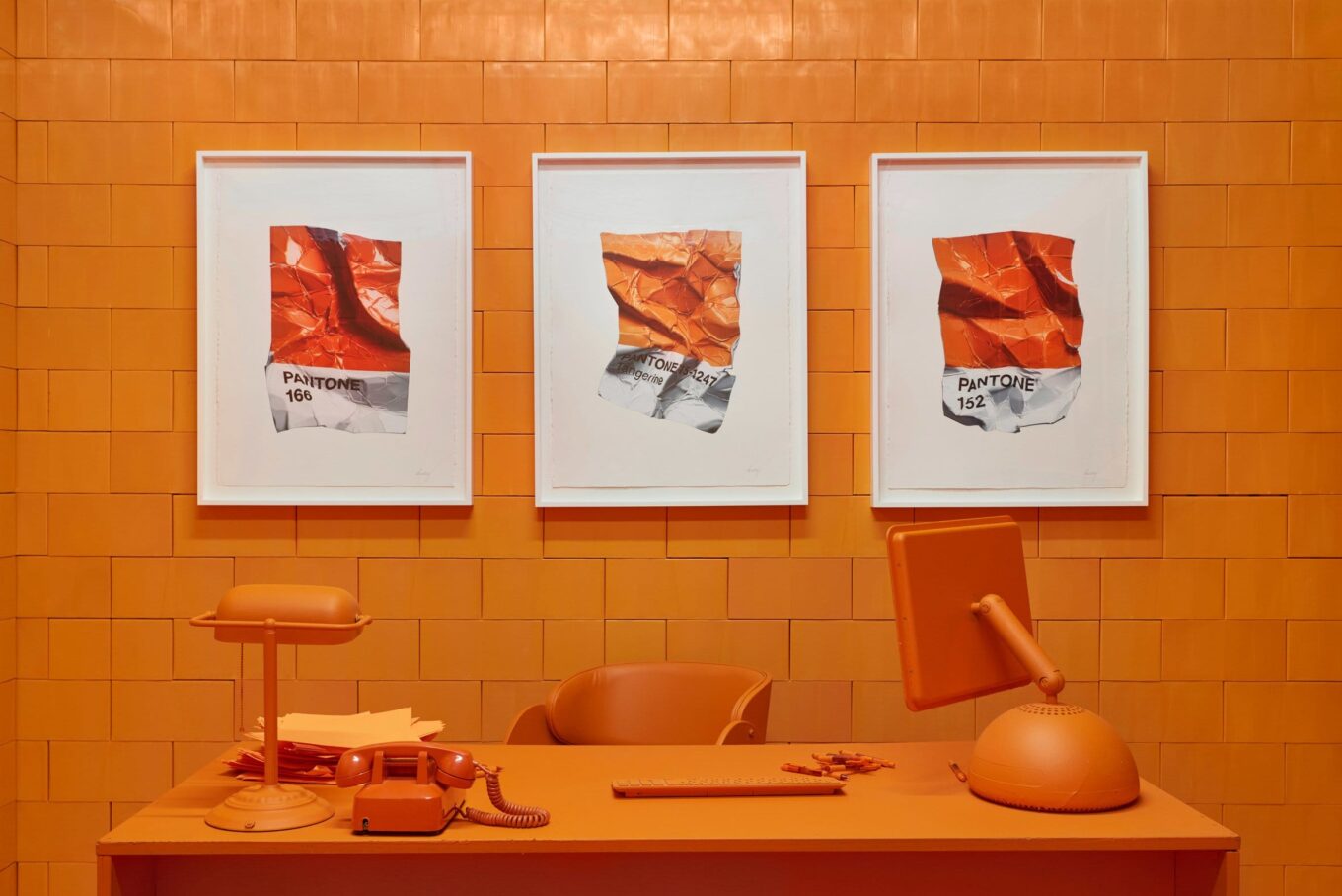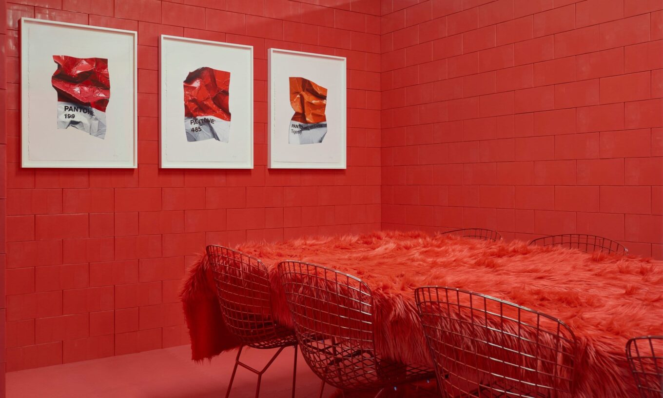 И тут мы подходим к главному – четкая и конкретная в мелочах Cj Hendry разместила на стенах выполненные в канонической гиперреалистичной манере изображения смятых образцов из палитры Pantone с цифровыми шифрами, соответствующими цветам каждого из пространств. Это и есть «Монохром»!