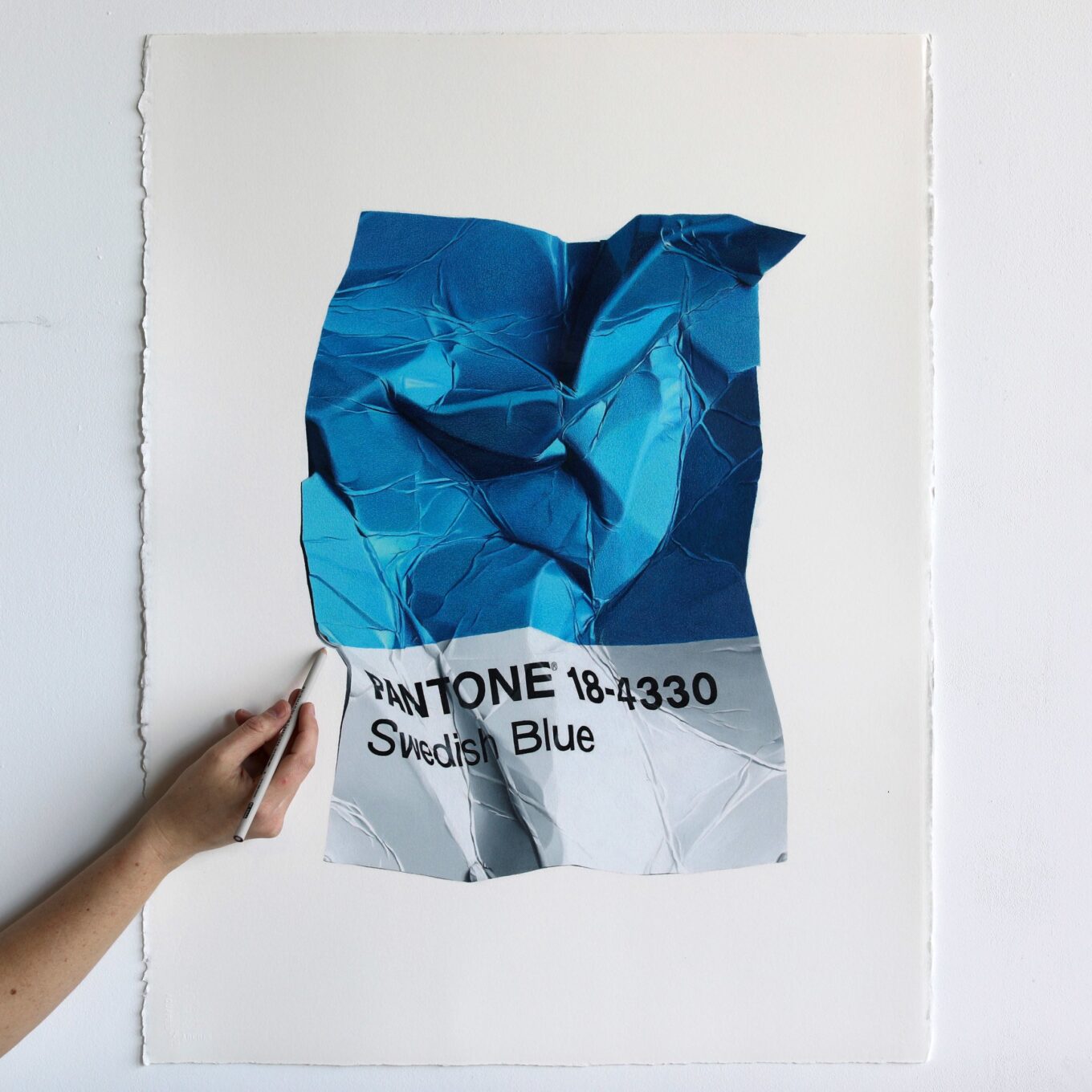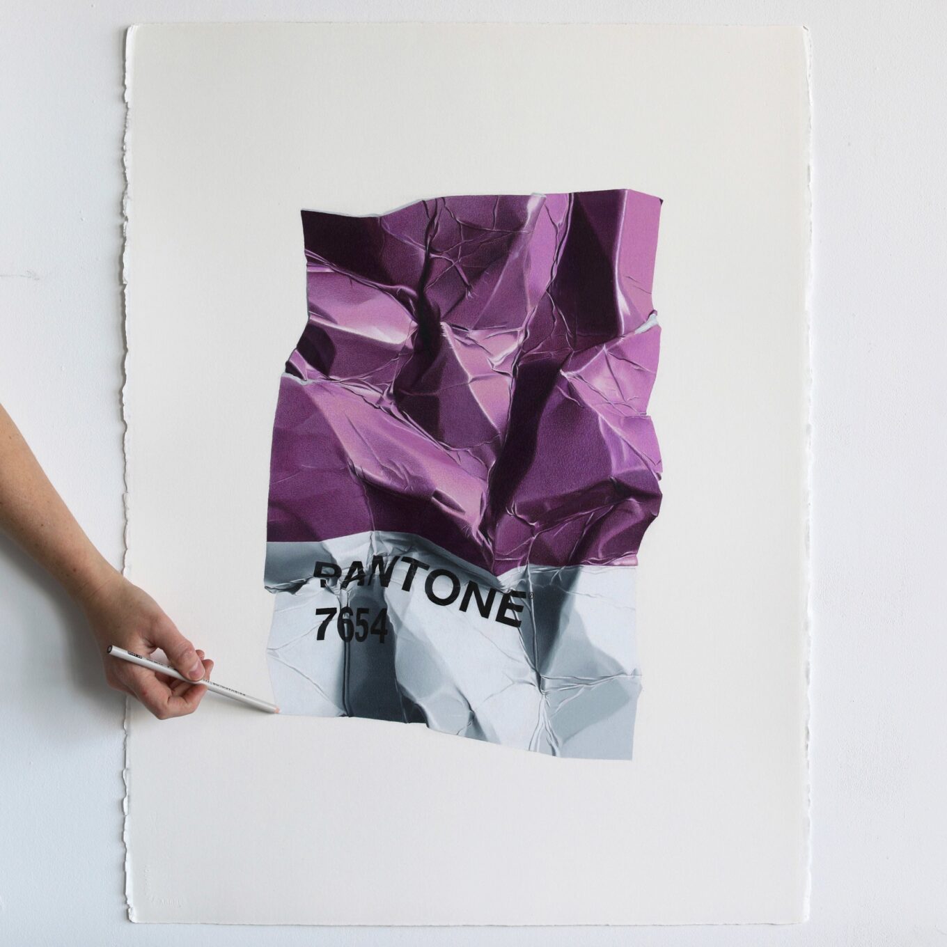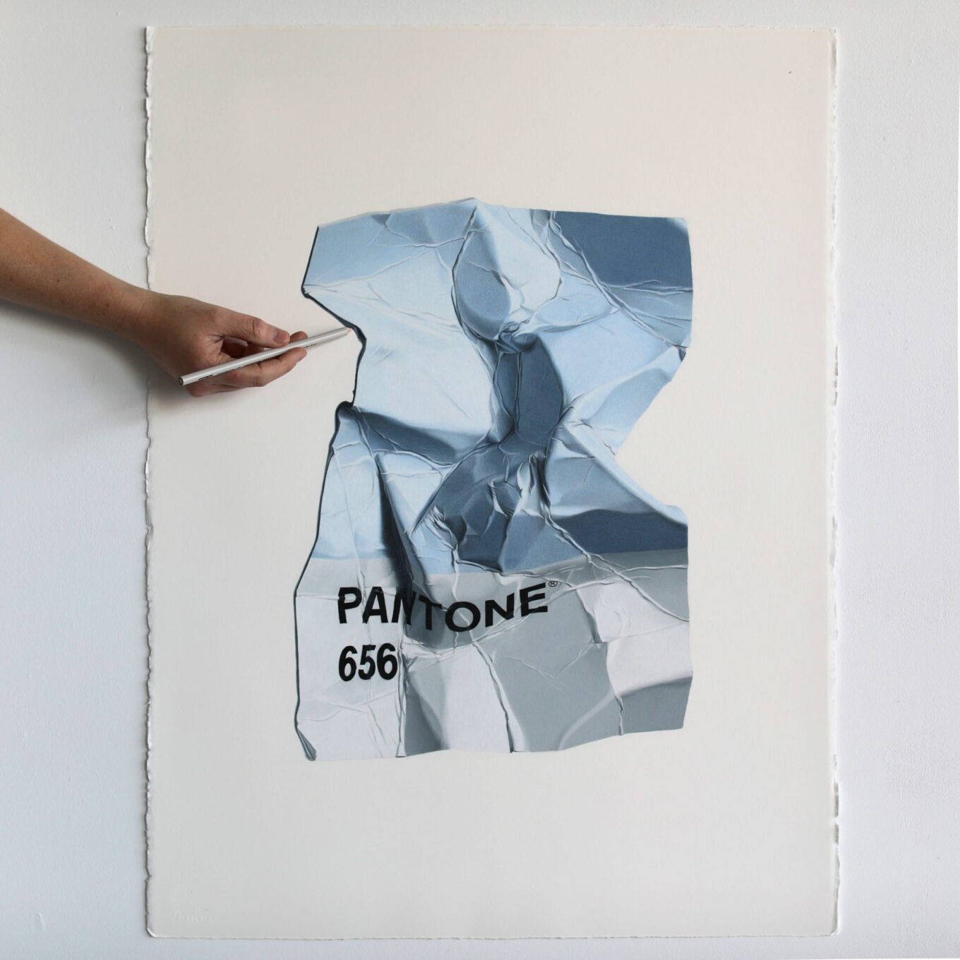 И тут мы подходим к главному – четкая и конкретная в мелочах Cj Hendry разместила на стенах выполненные в канонической гиперреалистичной манере изображения смятых образцов из палитры Pantone с цифровыми шифрами, соответствующими цветам каждого из пространств. Это и есть «Монохром»!