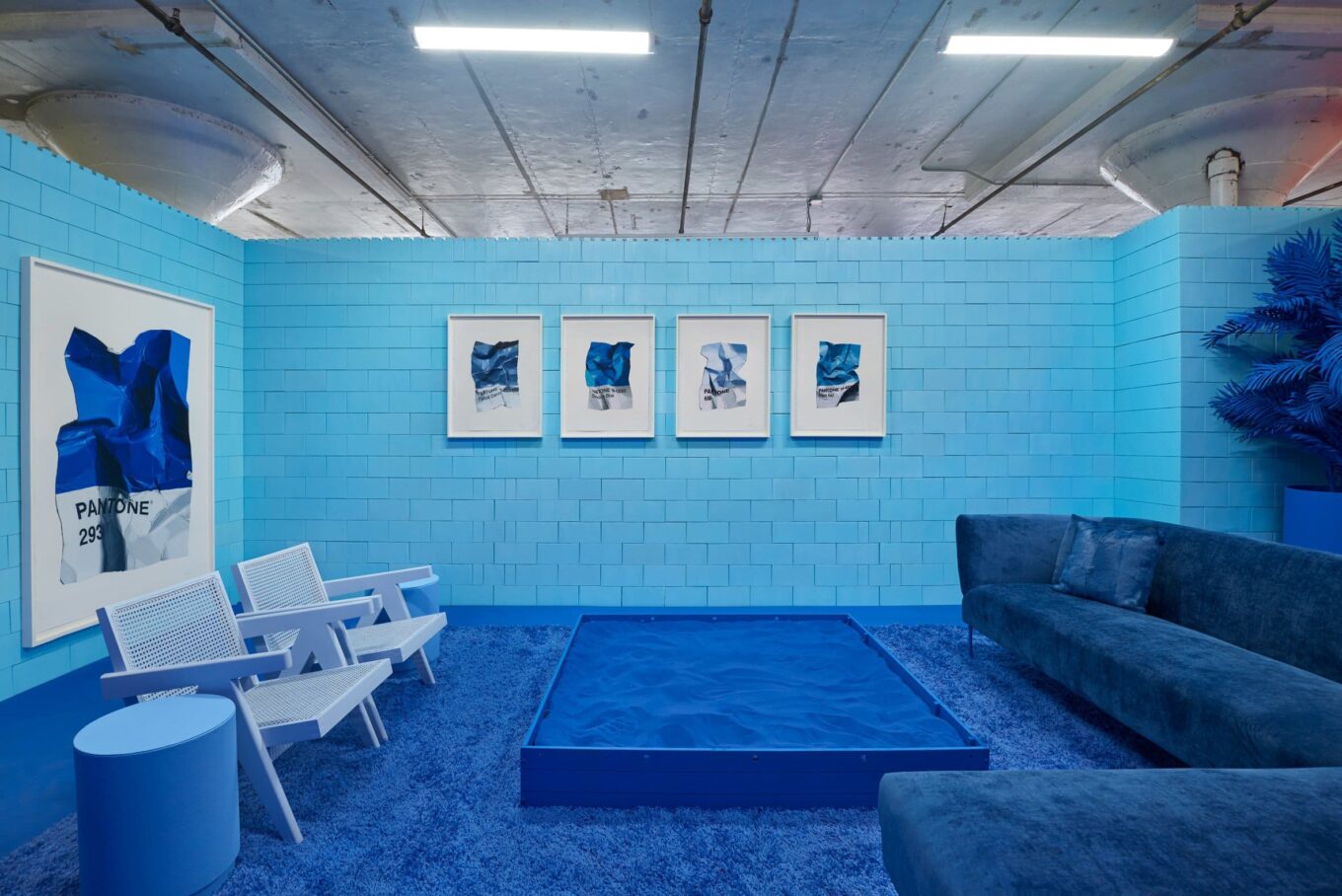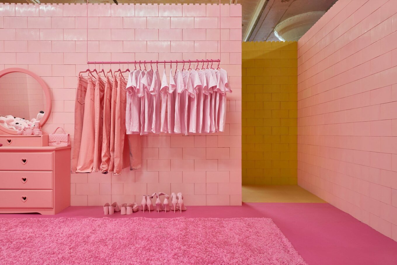 При этом, каждая мельчайшая деталь, включая стены из гигантских элементов, похожих на кубики Lego – подобрана в тон основному колору пространства.
