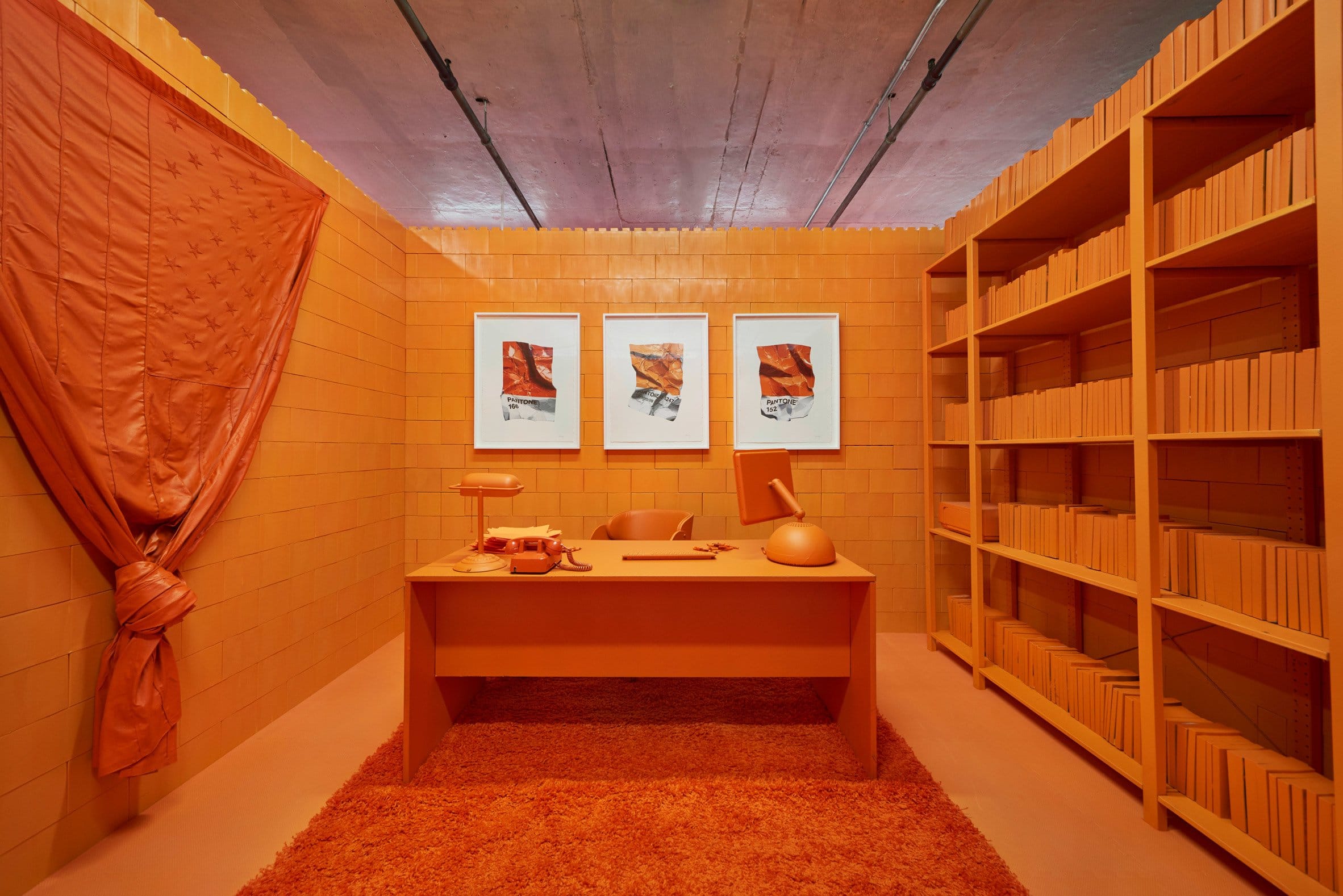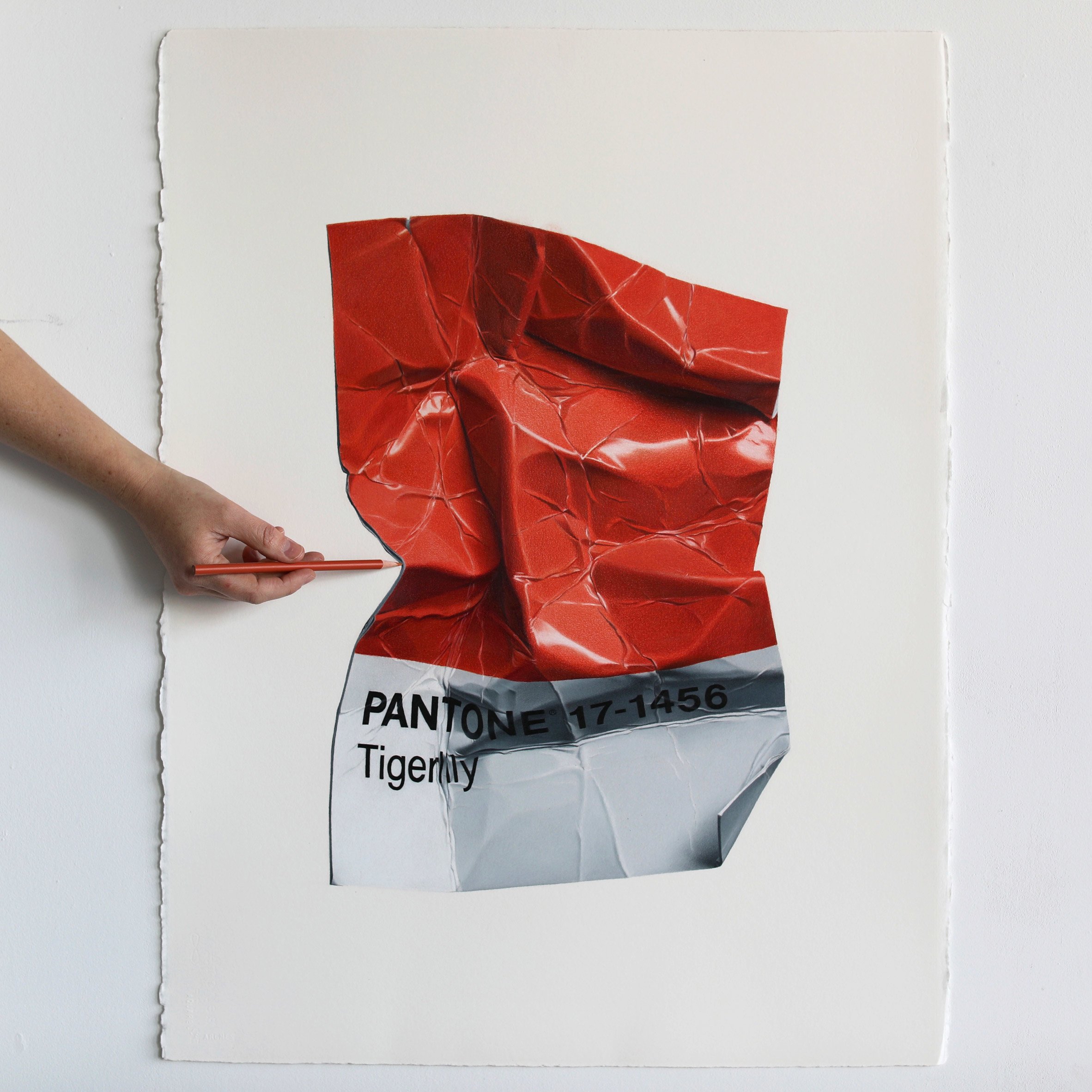 И тут мы подходим к главному – четкая и конкретная в мелочах Cj Hendry разместила на стенах выполненные в канонической гиперреалистичной манере изображения смятых образцов из палитры Pantone с цифровыми шифрами, соответствующими цветам каждого из пространств. Это и есть «Монохром»!