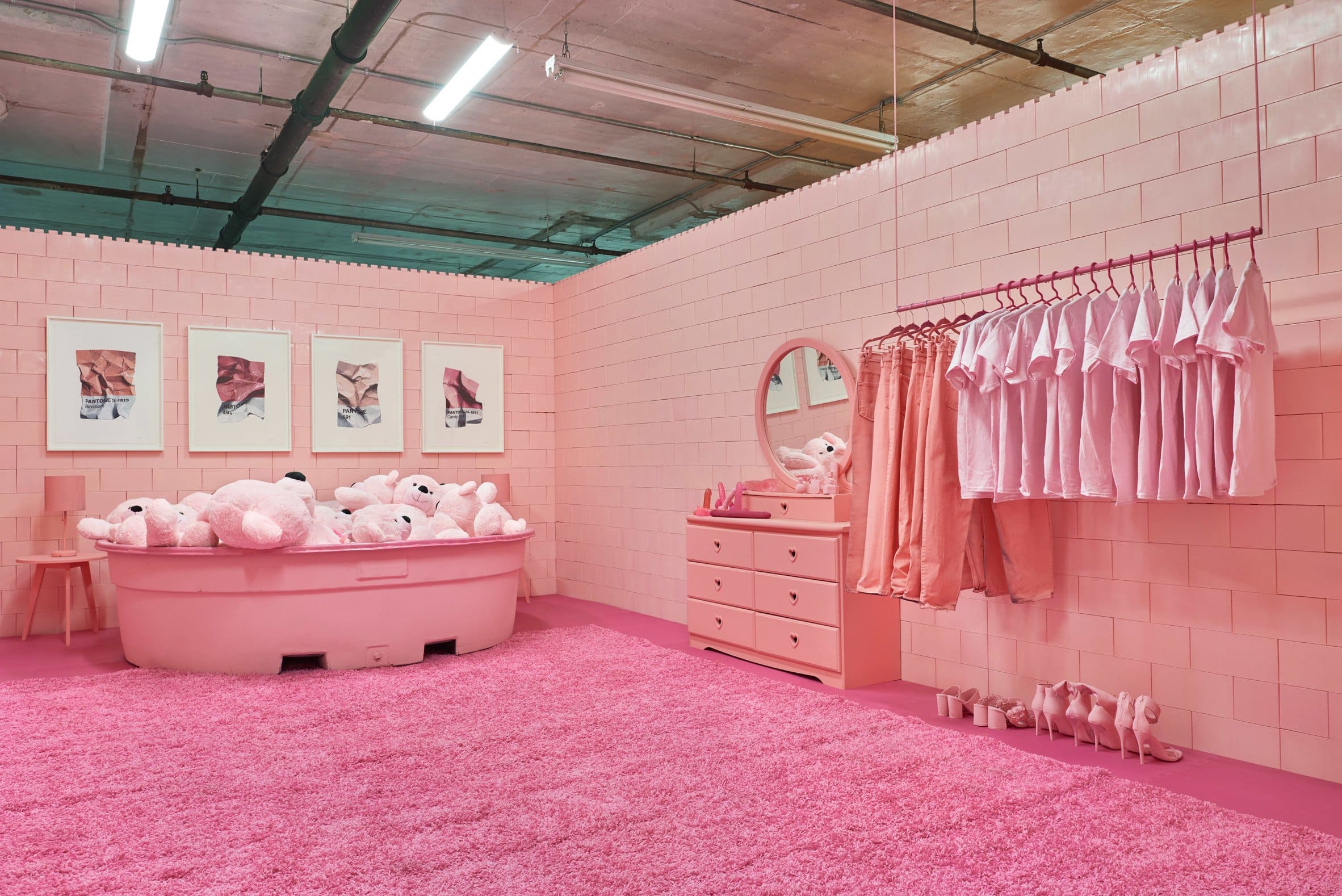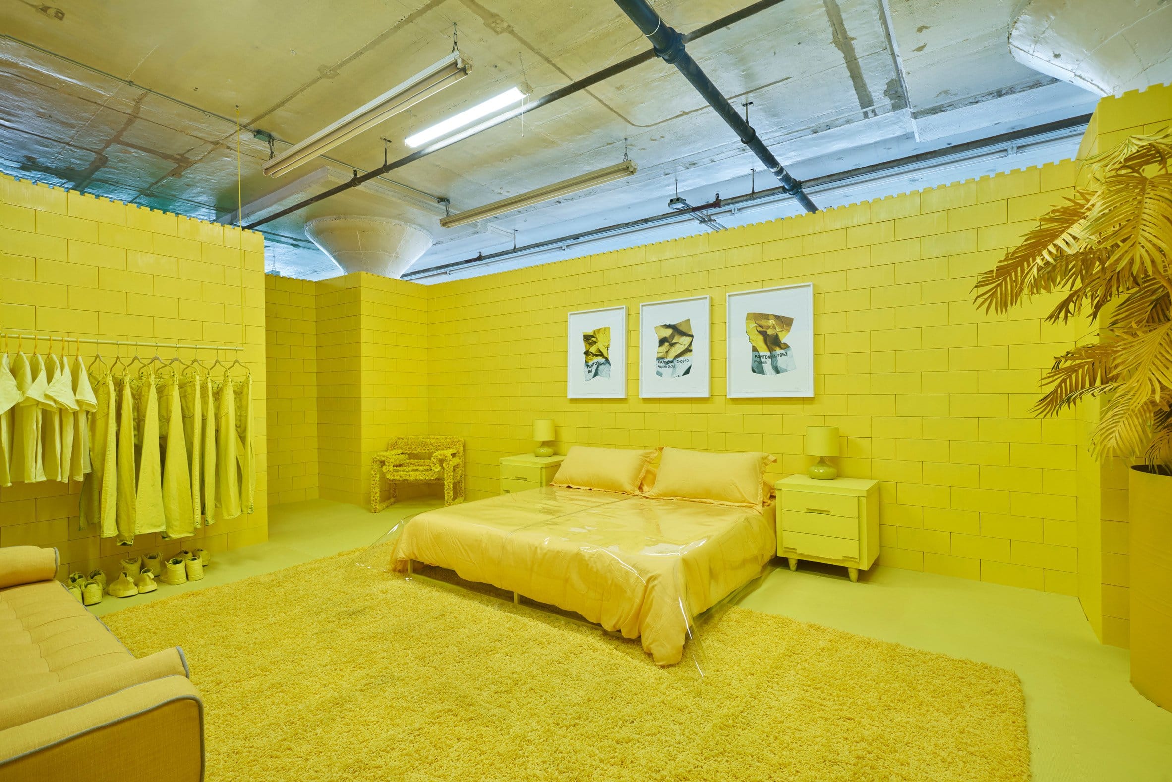 При этом, каждая мельчайшая деталь, включая стены из гигантских элементов, похожих на кубики Lego – подобрана в тон основному колору пространства.