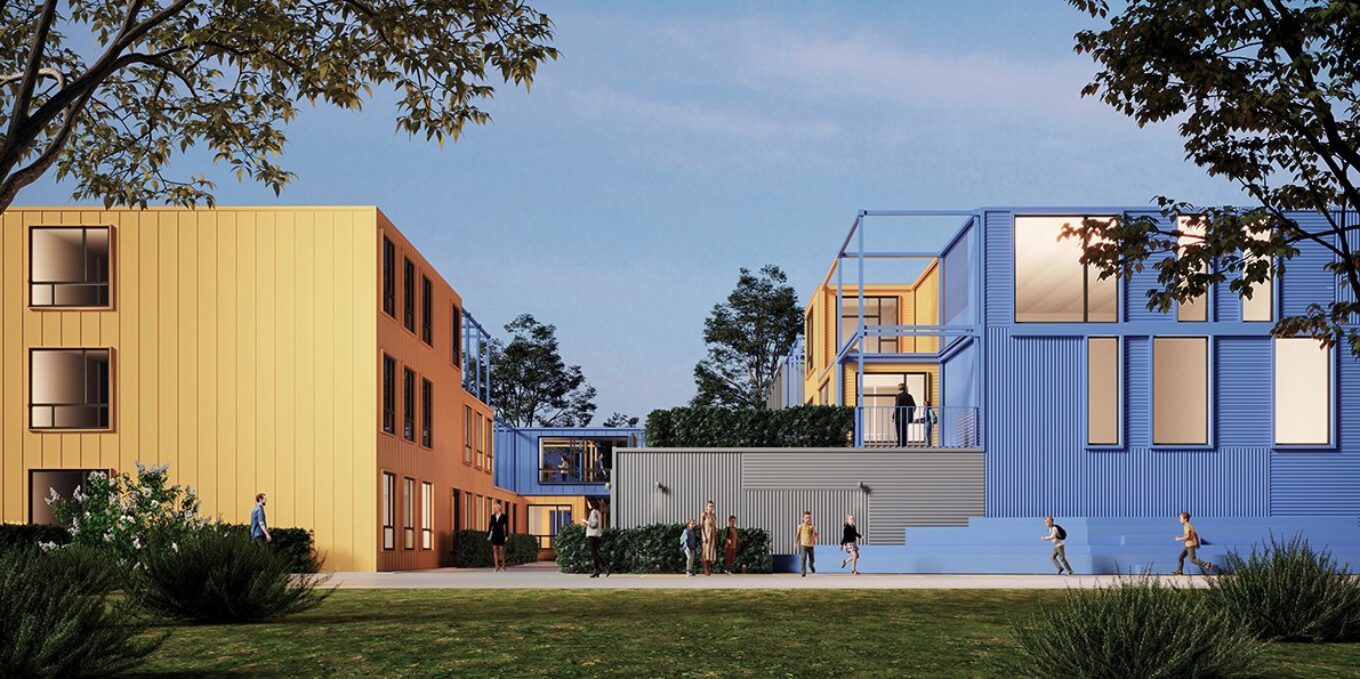ZIKZAK Architects відзначені за концепцію модульної школи “REVIVAL”, яка швидко будується та перепрофілюється, щоб оперативно відновити зруйновані школи по всій Україні. Проєкт демонструє важливість відбудови освітньої інфраструктури та стійкість.