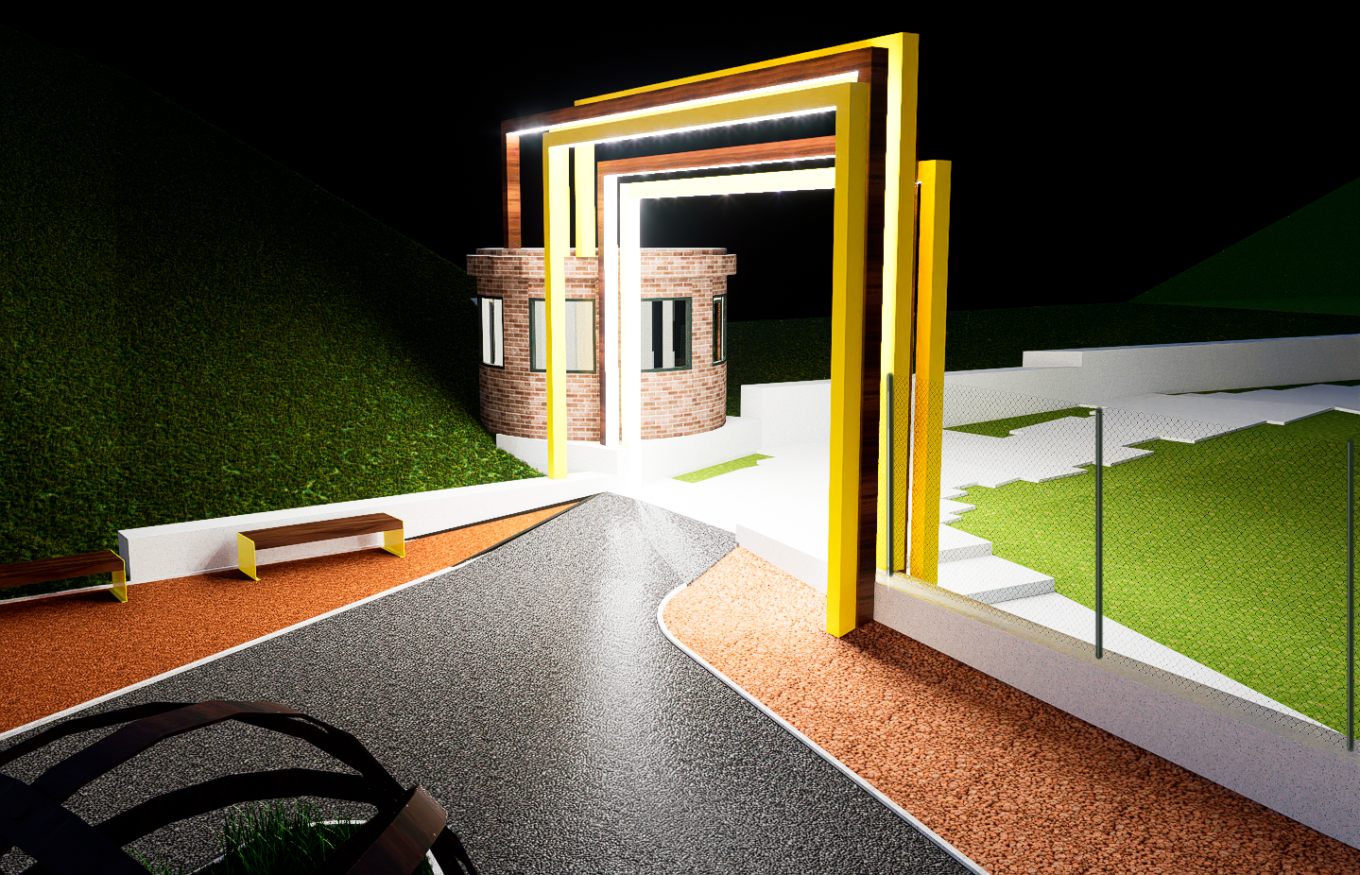 Ділянка має складний рельєф з перепадом понад 20 метрів, тому команда розробила підпірну стінку, яка відділяє будинок від схилу. У найвужчих місцях територія завширшки 4 метри, цього достатньо для проїзду пожежної машини, а вже для її розвороту архітектори передбачили майданчик у самому парку. Також розробили підʼїздну дорогу та запроєктували два плато для зручного та безпечного заїзду до підземних паркінгів.
