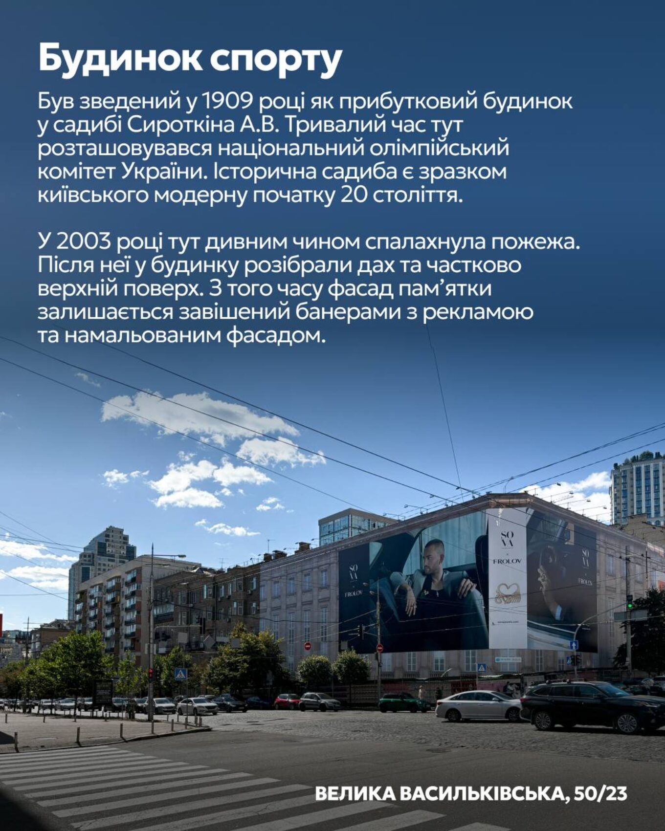 “Його фасад колись формував вигляд вулиці, але сьогодні будинок фактично схований за рекламними банерами й “намальованим фасадом”. Класика київського підходу до культурної спадщини”, – пояснюють памʼяткоохоронці.