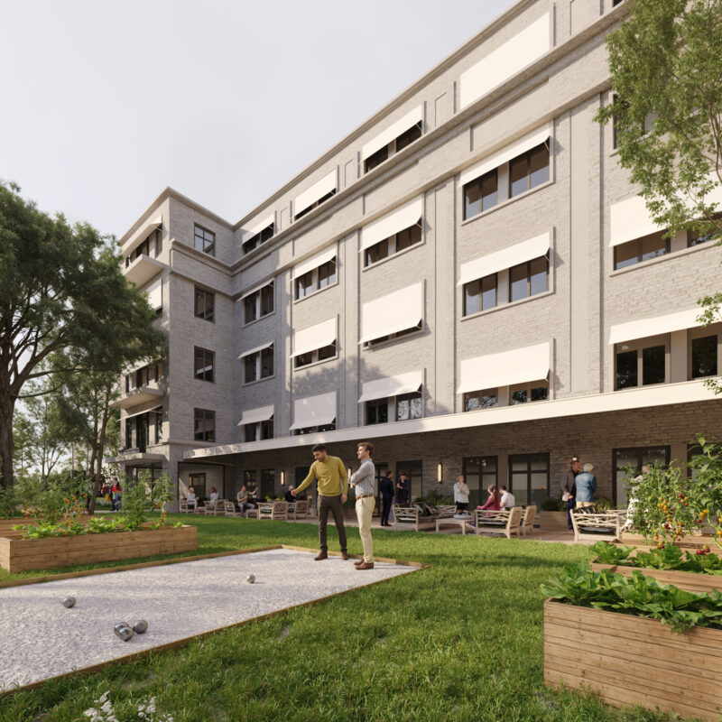 Передбачений також вільний доступ до коворкінгу, ресторану, городу, майданчику для гри в петанк та кінозалу, що використовуватиметься як укриття під час повітряних тривог.