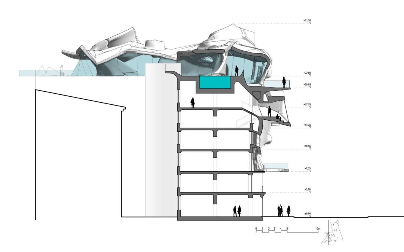 Реализация проекта не предполагает существенных вмешательств в конструкцию дома. Здание утратит лишь старую кровлю. Вместо нее предлагается соорудить сложную конструкцию из разноуровневых навесов, под которыми надстроят еще один этаж-пентхаус.
