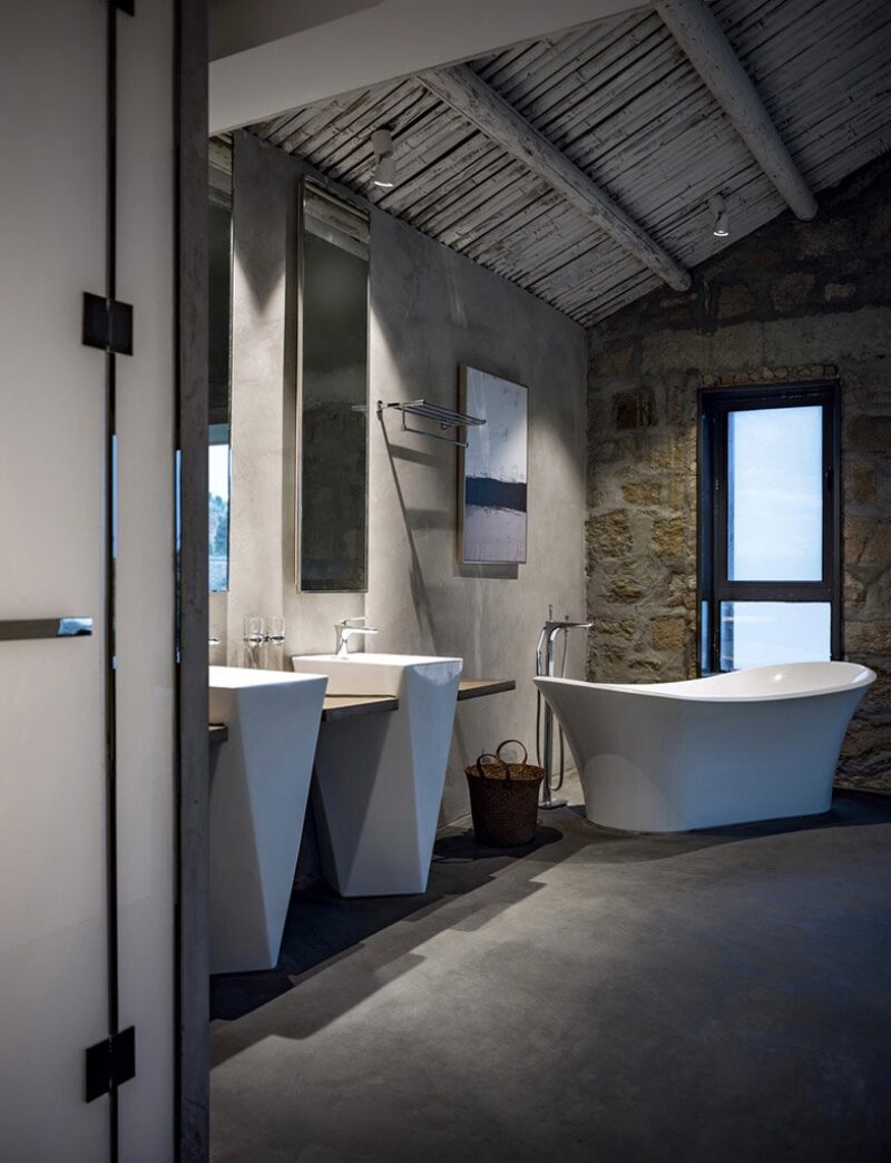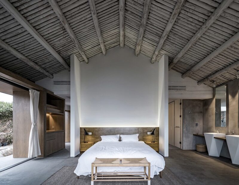 Они долго пустовали и потому крыши строений были частично повреждены. Главная задача архитекторов состояла в частичной реконструкции зданий и организации комфортных условий для их будущих обитателей. В одном из домов дизайнеры предусмотрели просторную хозяйскую спальню, а в другом – студию, переоборудовав и реставрировав старую кухню с обрушившейся крышей, которую заменили стеклянным двускатным потолком.