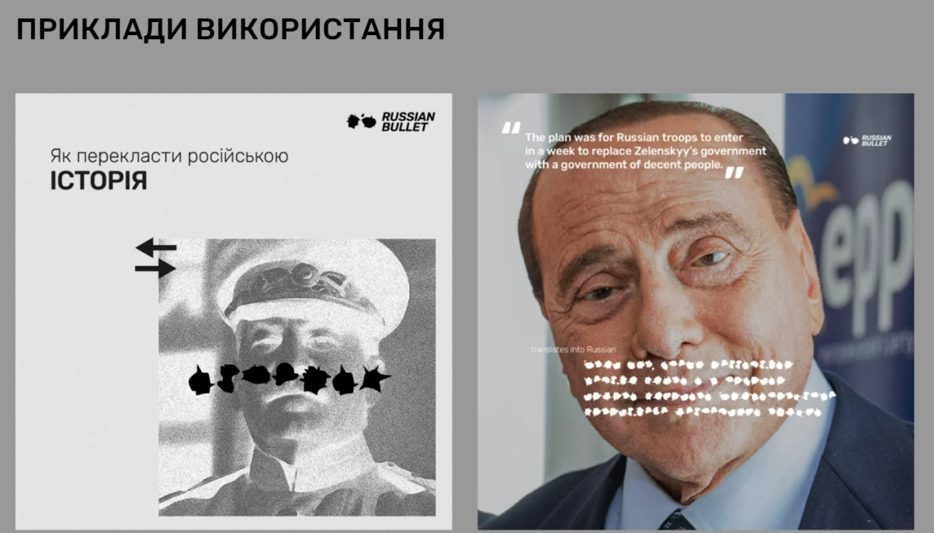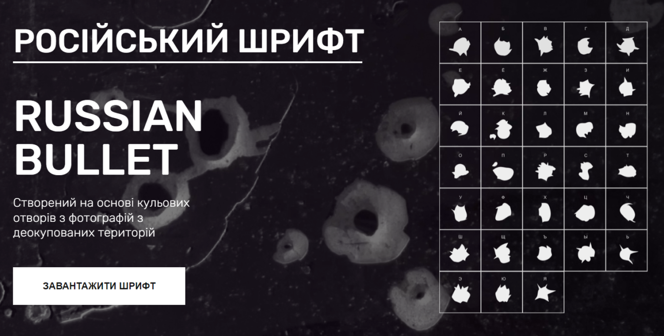 І ми вирішили такий шрифт створити. Він називається Russian Bullet, адже кожній російській літері у ньому відповідає кульовий отвір, залишений у стінах наших будинків, у цивільних автівках, у приватних речах. Це наочний приклад того, до чого може привести позиція “мова не важлива””, – пояснюють автори проєкту.