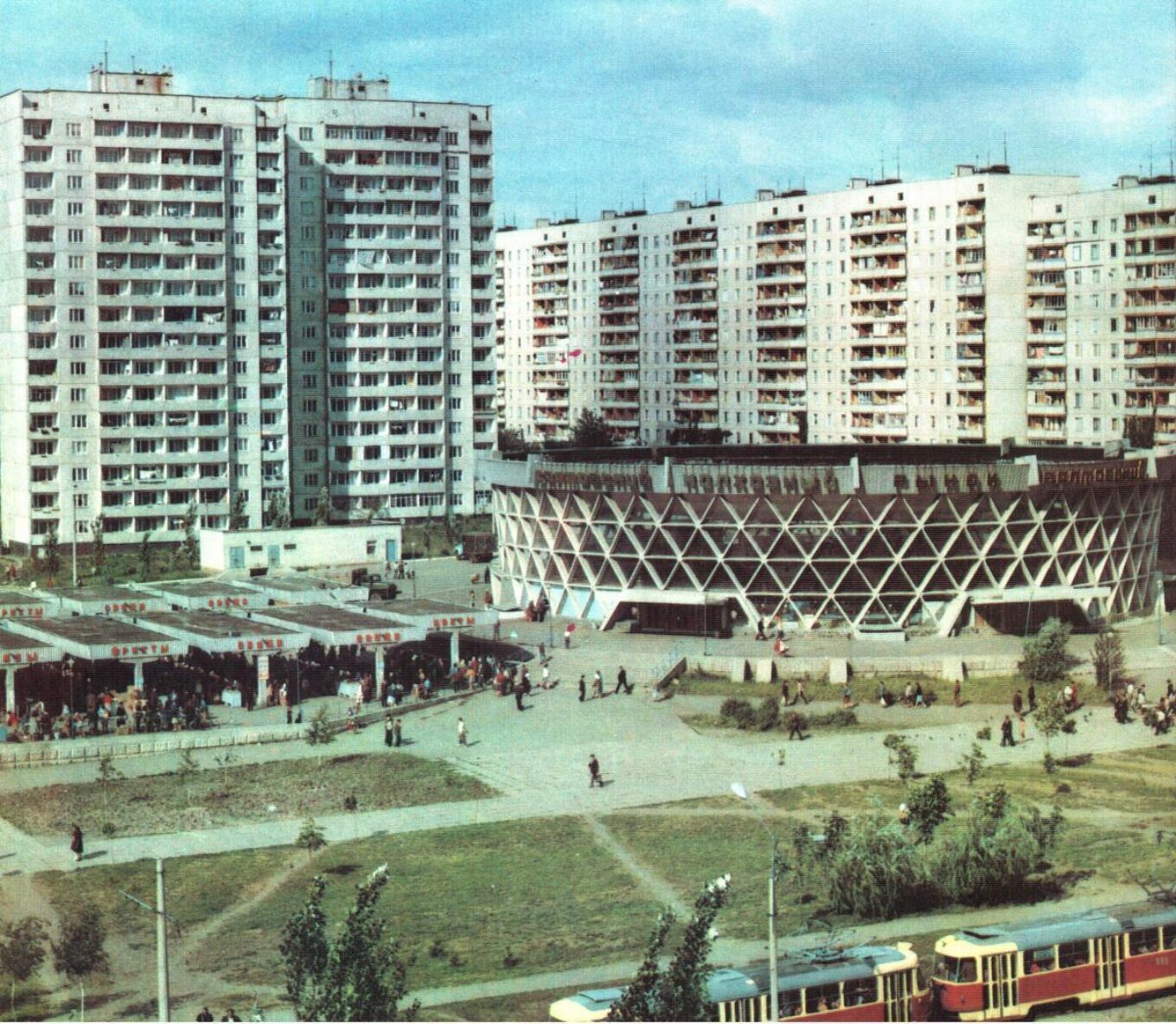 Дослідниця модернізму Ельміра Еттінгер розповіла у коментарі для PRAGMATIKA.MEDIA, що експериментальна споруда була зведена у 1973 році за проєктом архітекторки Алли Аніщенко. Вона також спроєктувала подібні криті ринки у Харкові, Рівному та Черкасах.