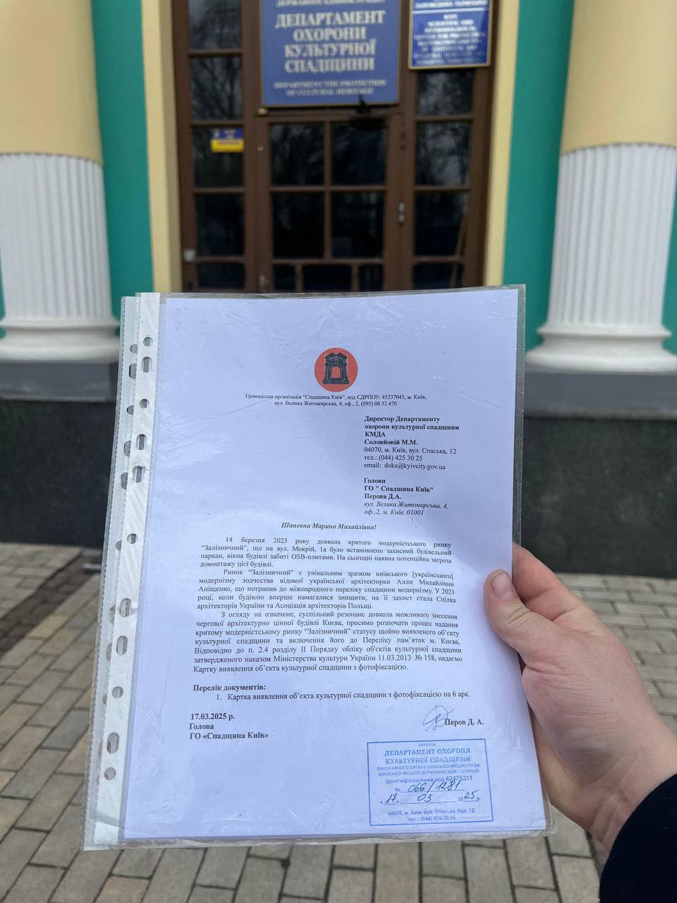 Однак в дійсності будівля не має охоронного статусу. 17 березня памʼяткоохоронець Дмитро Перов подав до ДОКСу КМДА картку виявлення обʼєкту культурної спадщини – критий модерністський ринок “Залізничний”.