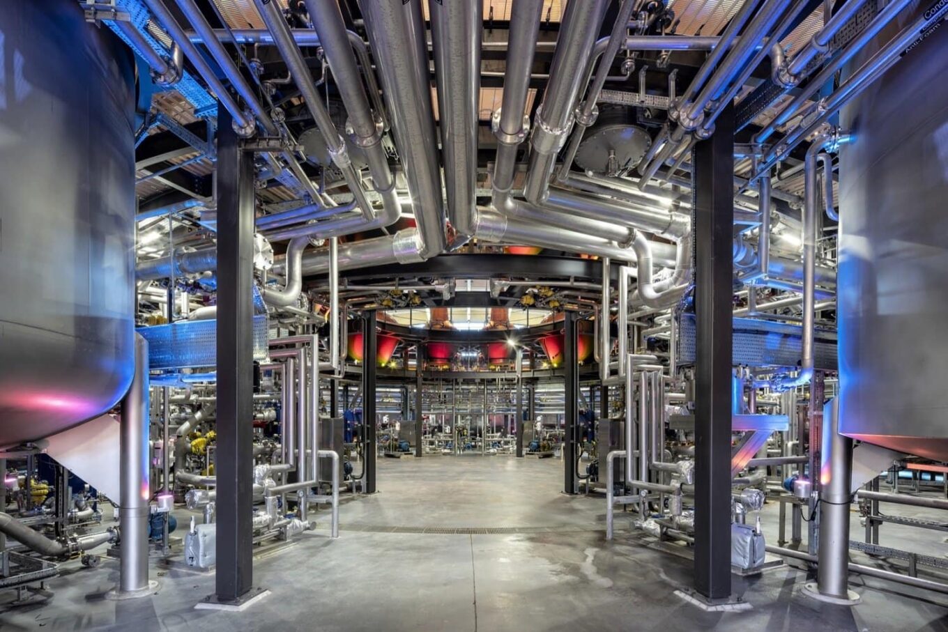Расположенный в сельской местности Крейгелаччи, завод настолько искусно интегрирован в ландшафт, что на первый взгляд кажется его естественным элементом. Зеленая крыша повторяет очертания пологих холмов, а основой ее конструкции является сложная ячеистая структура из дерева. Здание только выглядит невысоким, на самом же деле большая его часть – погружена под землю.