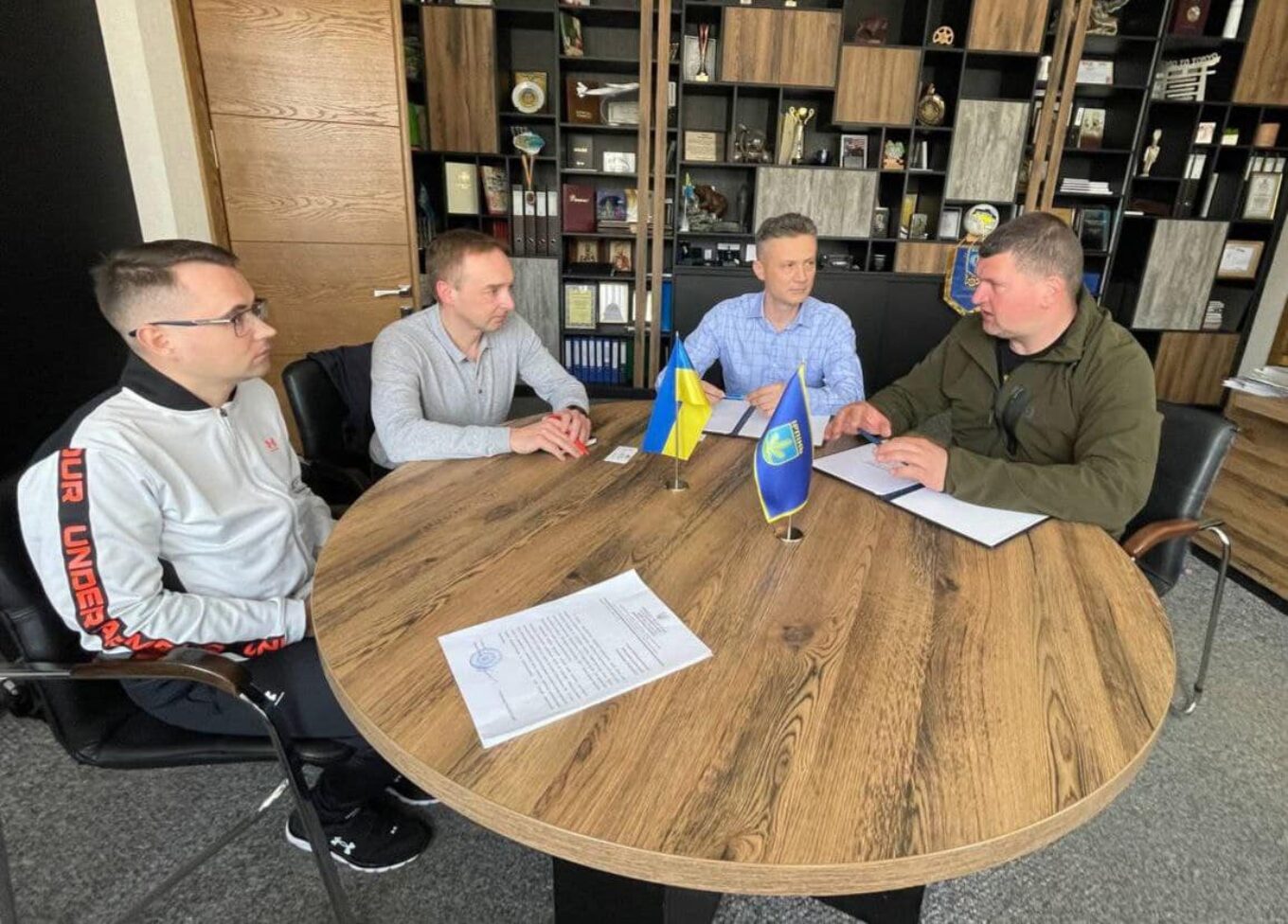 Мер Ірпеня Олександр Маркушин підписав договір разом із керівником Signify в Україні Олексієм Шершнем. Фото: Facebook/Олександр Маркушин