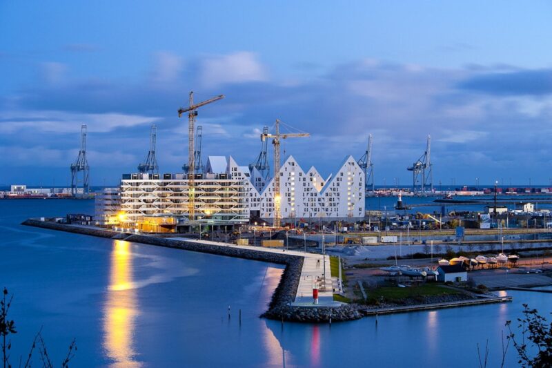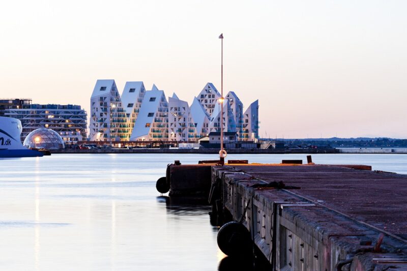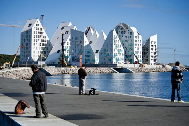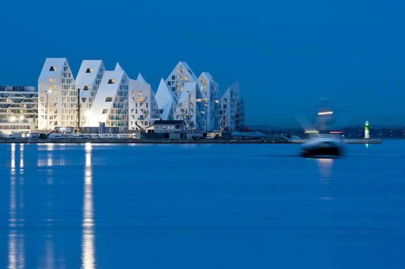 Жилой комплекс «Айсберг» на берегу залива Орхус-Бугт на полуострове Ютландия был построен вразрез с изначальным градостроительным планом, который предполагал возведение квартала из параллельно стоящих многоэтажных домов.
