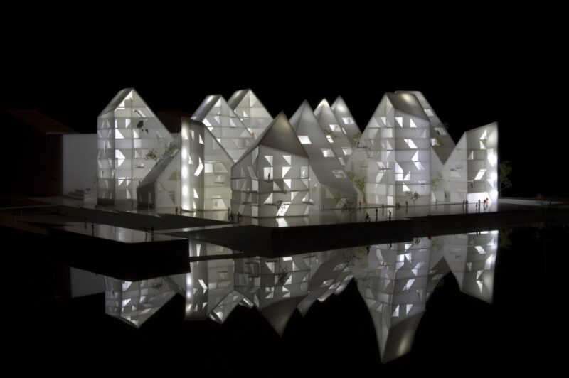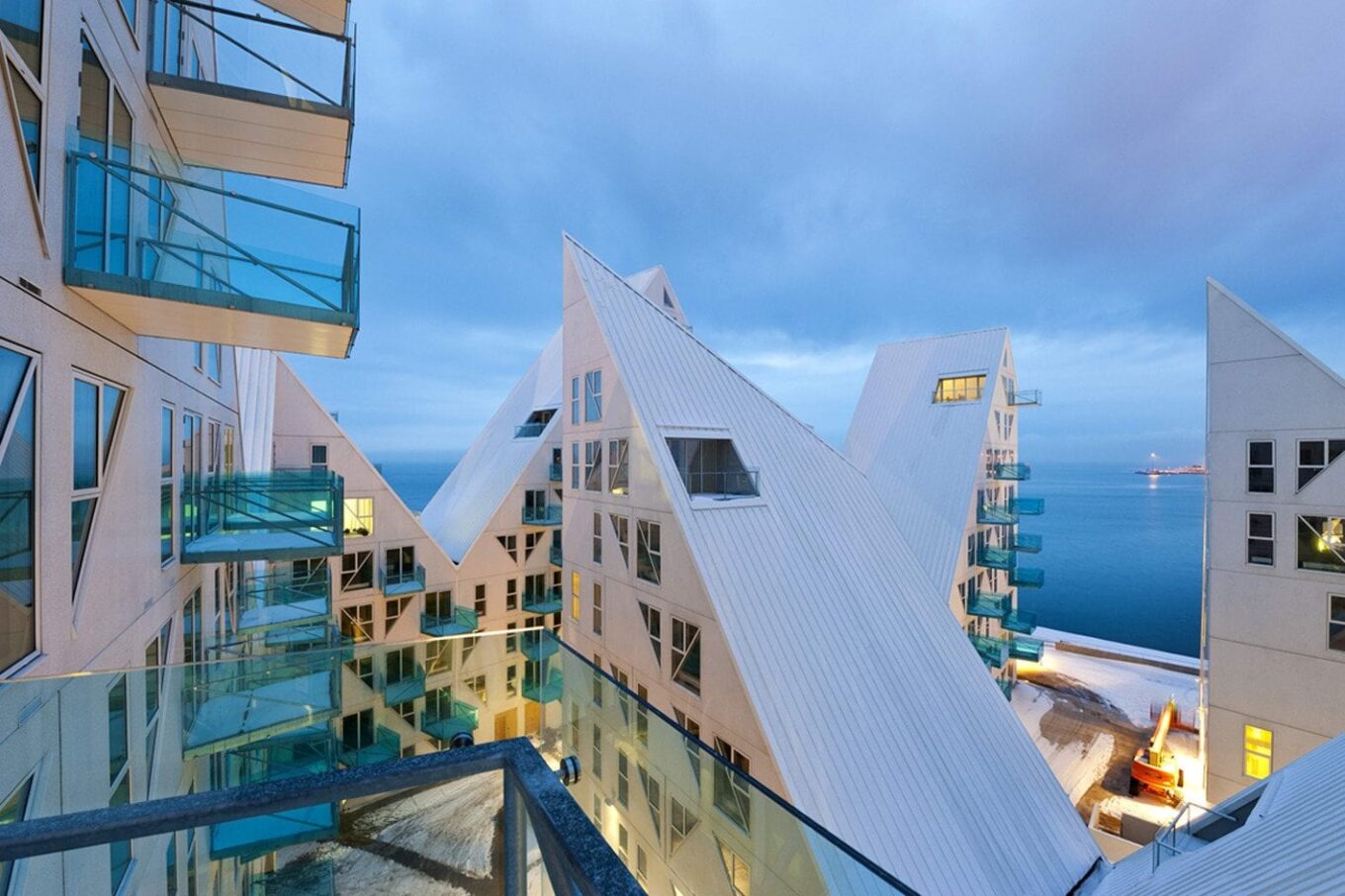 Острые горы и долины, белое оформление фасадов и бирюзовые балконы – все это визуальное разнообразие придает жилому комплексу эстетическую привлекательность, которую по достоинству оценили жюри различных архитектурных конкурсов. Строительство “Айсберга” было завершено в 2013 году, и с тех пор он завоевал несколько наград на престижных международных конкурсах.